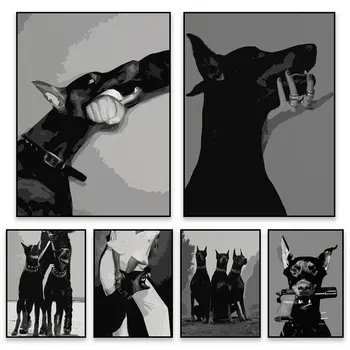 Luxury Fashion Doberman Poster Black and White Dog Aesthetic Wall Art Prints Minimalist Bathroom Decor Bedroom Canvas Painting