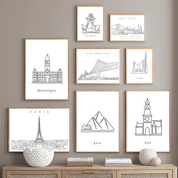 Minimalist Lines City Paris San Francisco Los Angeles Wall Art Mural Canvas Painting Poster Print Picture Living Room Home Decor