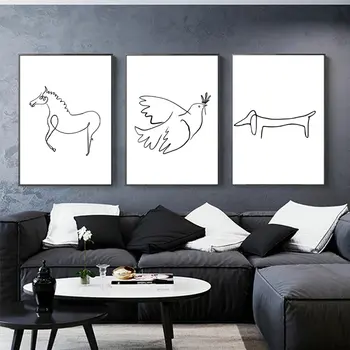 Picasso Minimalist Animal Dog and Peace Dove Canvas Painting Wall Art Pictures Posters and Prints for Living Bedroom Home Decor