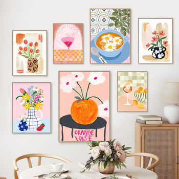 Retro Flowers Vase Gallery Colorful Funky Poster And Prints Simple Wall Art Canvas Painting Wall Pictures For Living Room Decor