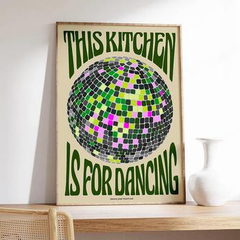 Minimalist This Kitchen Is for Dancing Quote Canvas Painting Vintage Disco Wall Art Poster Print Picture Kitchen Bar Home Decor