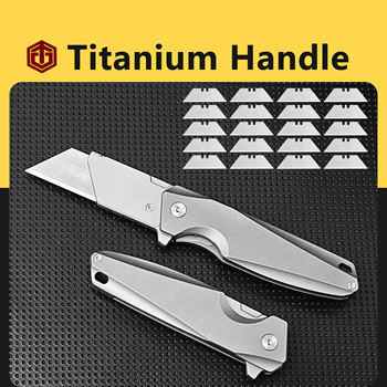 Titanium Alloy Folding Knife Utility Pocket Portable Cutting Tools Metal Handle Pipe Cutter Outdoor EDC With 20PCS Blades
