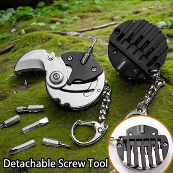 1Pc Foldable Keychain Screwdriver Multifunctional Coin Outdoor EDC Repair Tool, Folding Coins Knife Pocket Fold Mini Gear Knifes