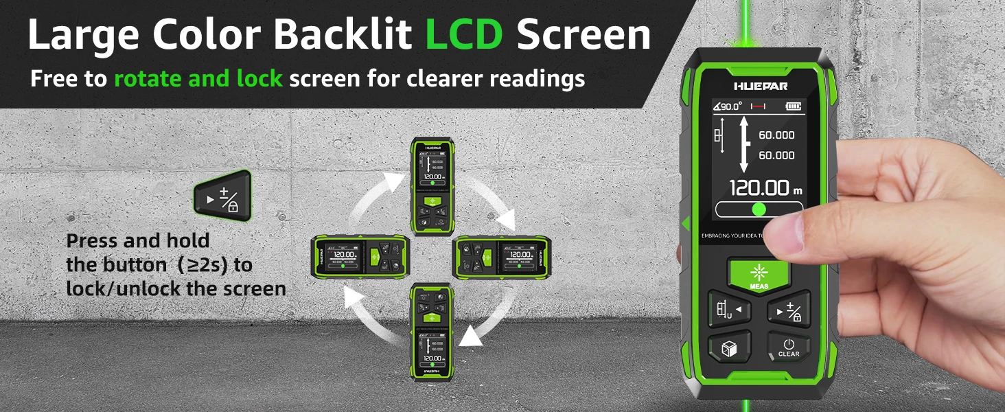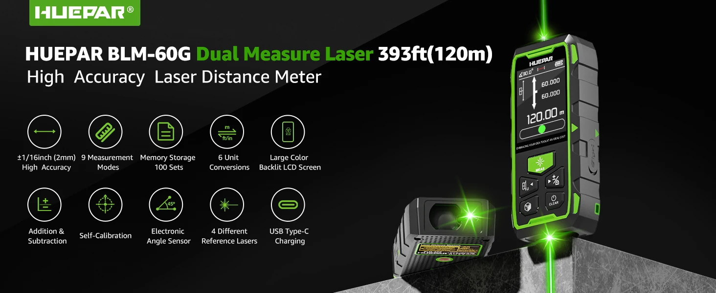 Huepr Dual Green Laser Rangefinder 60M/120M/100M/200M Laser Meter With High Accuracy And LCD Display Laser Distance Measure Tool![]()