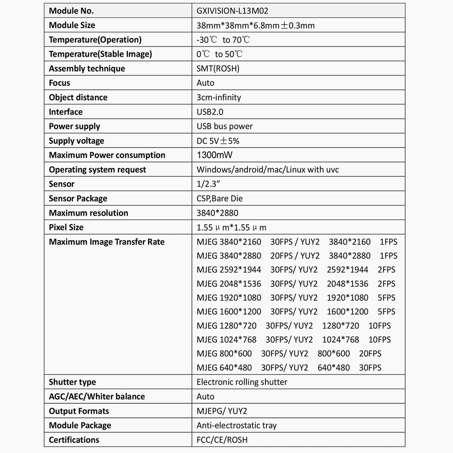 SHENZHEN GUOXUN INTELLIGENT TECHNOLOGY CO., LTD., who have 10 years history, is a professional manufacturer of surveillance system,has its own brand GXIVISION, which already well know in security surveillance system. With its own unique R&D team as the basic, oriented by dedicated sales team, GXIVISION already developed into a prefessional video products company integrate with developing, production, sales and also service all together. GXIVISION is developing its own special USB Cameras for industrial vision. Recently, we present new USB camera module including VGA USB camera module, 1MP USB camera module, 2MP USB camera module, 3MP USB camera module,5MP USB camera module, 5MP autofocus, 8MP/4K USB camera module,8MP autofocus,13MP USB camera module to 16MP USB camera module which already used in all kinds of industrial system.
