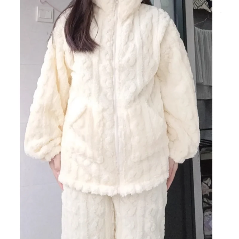Inter Pajamas Women’s Plush Thick Coral Velvet Women’s PLUS SIZE Jacquard Flannel Pajamas Set Sleepwear Women Home Clothes