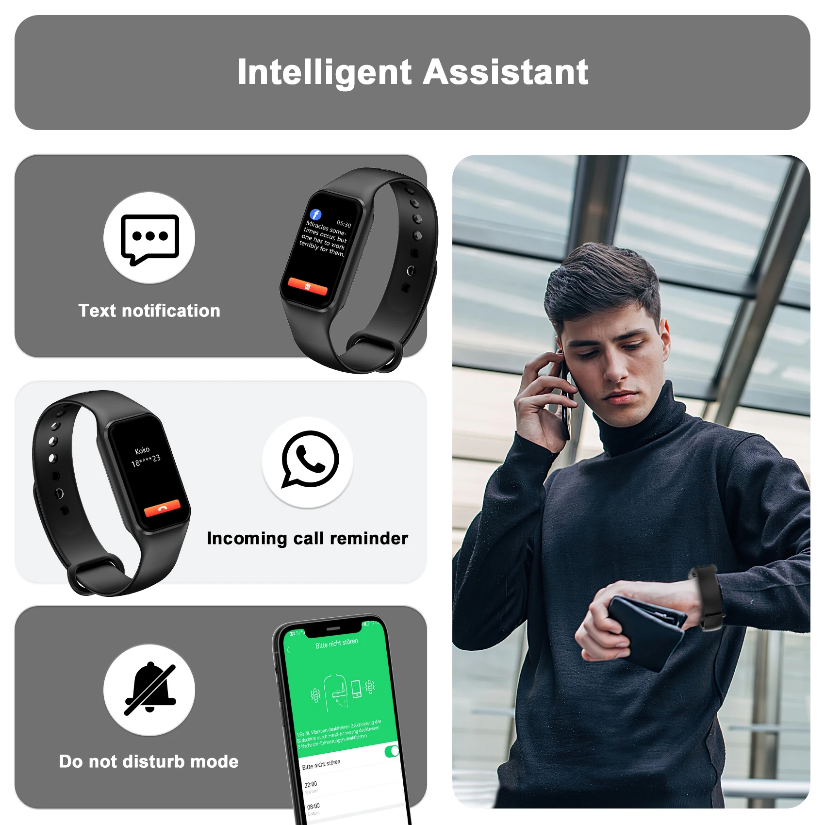 【Physical condition and sleep monitoring】The fitness watch features a built-in optical tracking sensor that monitors sleep and heart rate 24 hours a day, recording physical conditions and sleep quality to help the user analyze and improve their health. Note: The data displayed on this smartwatch is for reference only and is not intended for medical use.