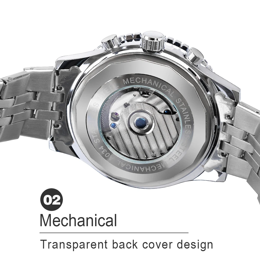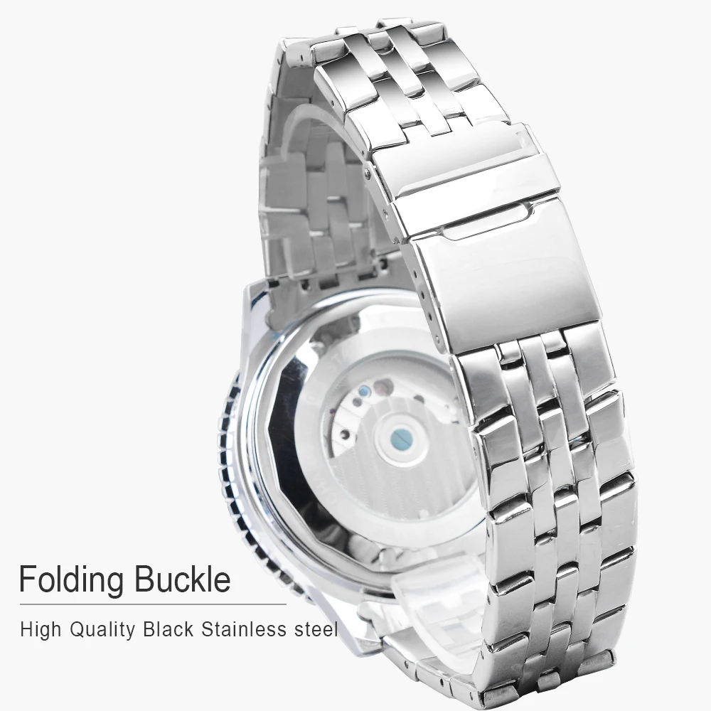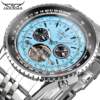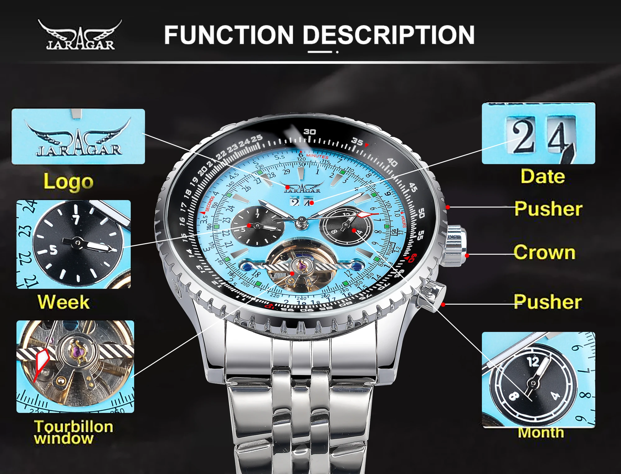 Jaragar Mens Automatic Mechanical Watch Fashion Tourbillon Blue Dial Date Display Stainless Steel Strap Military Sport Watches