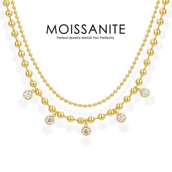 1.25 CTW Moissanite Necklace for Woman Double Layer Beaded Design 925 Silver 18K Gold Plated Minimalist Layered Jewelry