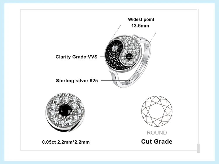 √ FIT ANY OCCASION: Add style to a basic look with these solid S925 adjustable ring for women. Ring shines even more by natural black spinel. Tai Chi Yin Yang embellished by cubic zirconia could wear to form a unique and exciting personality.Perfect for everyday wear for a statement-making look no matter the occasion. Make a dazzling addition to your jewelry collection!