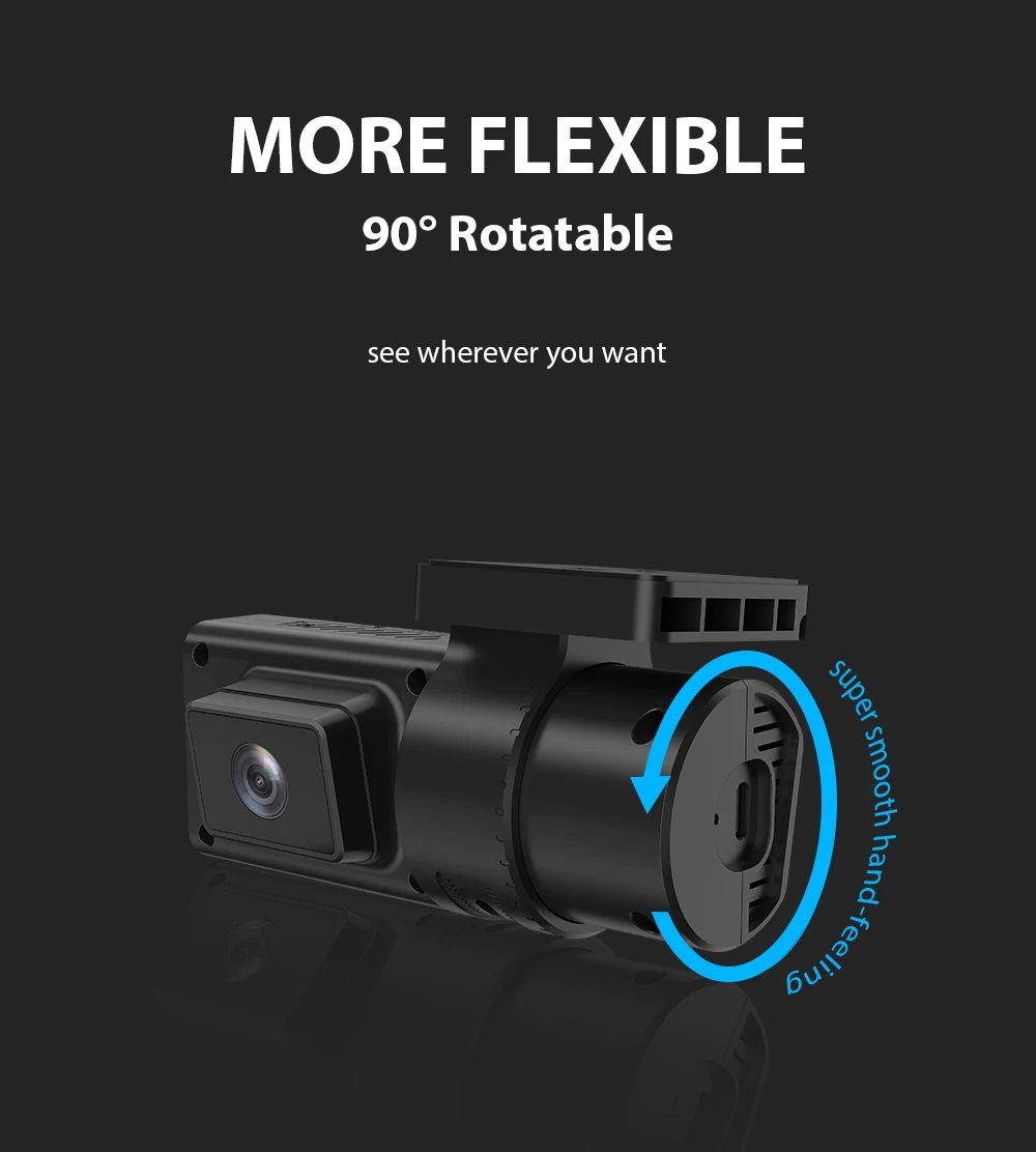 Simultaneously monitor the road ahead and what happens in the cab in real-time through the two on-device lenses, with no peripheral camera needed
