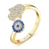 KALETINE Lucky Wedding Bands Hamsa Evil Eye Ring Women Girls 925 Sterling Silver Ring Jewelry Luxury Adjustable Female Open Ring
