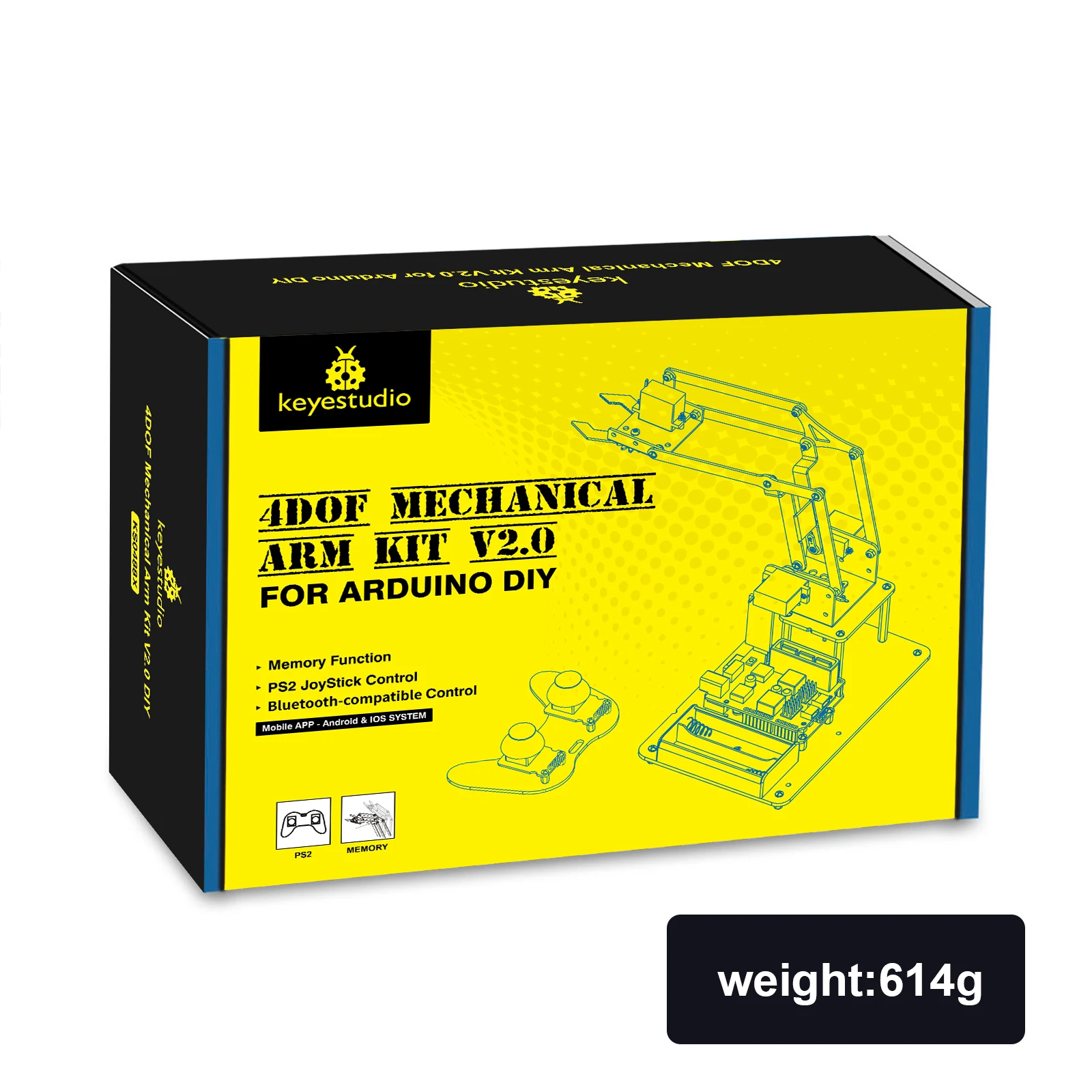 This kit includes Arduino single-chip microcomputer, 2 joystick modules and 4 servos and so on. Next, we’ll teach you how to install and debug the robotic arm.