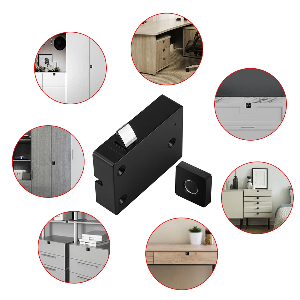 Smart Fingerprint Lock Anti-theft Electronic File Storage Cabinet Keyless for Furniture Drawer Box Home Office Feature: PC and ABS materials are strong and durable. Easy to install, safe to use, exquisite and small in appearance. The fingerprint recognition area is equipped with a three-color sensing breathing light. Real-time feedback on the status of the drawer fingerprint lock. Upgrade chip efficient processing system, more stable and safer, and protect your family. Low power consumption, external USB mobile power emergency socket, no need to worry about the door lock being out of power and unable to open when returning from a trip. Semiconductor fingerprint recognition. The fingerprint capacity is 20 pieces, living body security fingerprints. Professional biometric technology, rapid identification, 360° semiconductor biometric identification at any angle, quick unlocking in 0.5 seconds. Artificial intelligence fingerprint algorithm. The elderly and children can use it. With self-learning algorithm, fingerprints can be compared, spliced and recorded every time. Effectively improve the recognition rate, the more you use it, the more sensitive it is. A variety of scene applications. It can be used in bedroom, living room, study, office, etc. Support furniture file / cabinet shoe / cabinet / letter box / drawer installation; can be installed on drawers, single-opening cabinets and double-opening cabinets. Specification: Comparative advantage: Note: