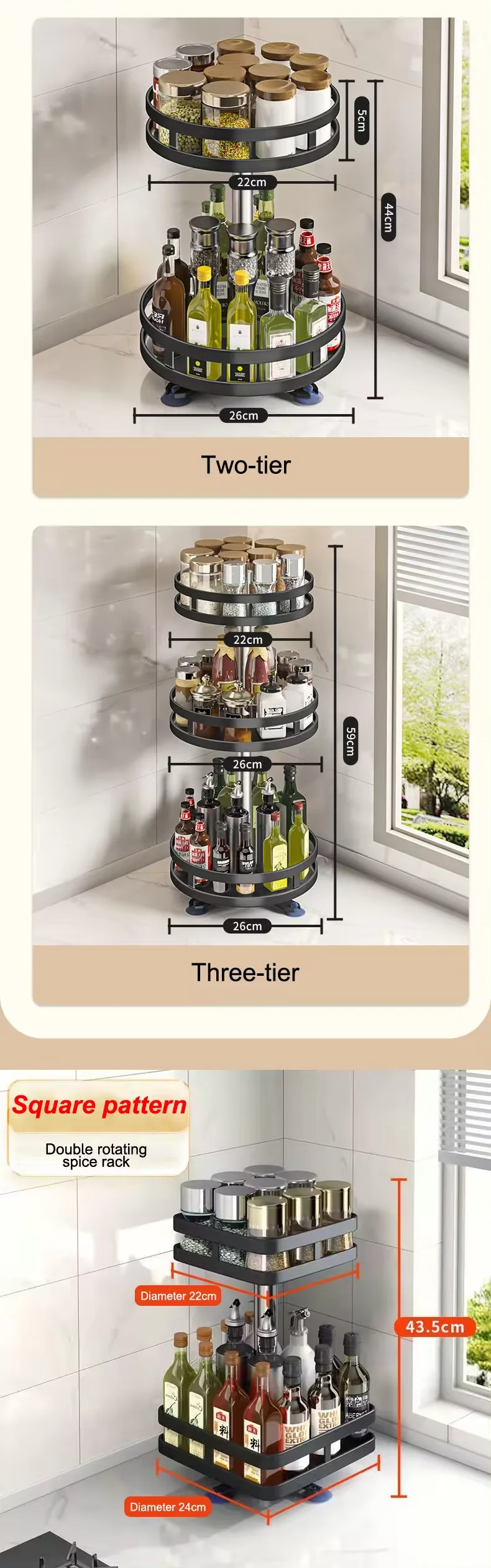 Kitchen Spice Rack 360°Rotating Seasoning Rack Storage Tray Rotating Multi functional Kitchen Accessories No Punching Organize