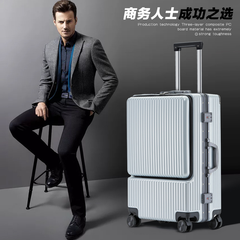 KLQDZMS 20″22″24″26Inch Carry-on Suitcase Front Opening Laptop Boarding Case Aluminum Frame Trolley Case USB Charging Luggage