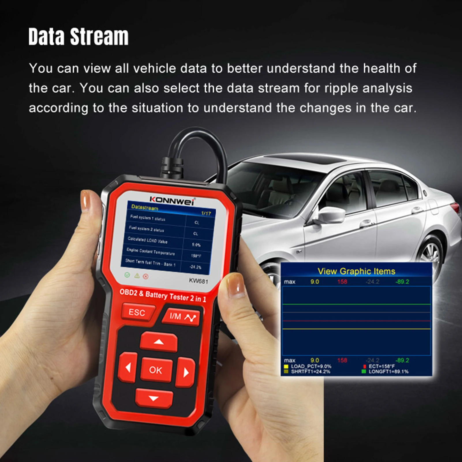 KW681 Works on all 1996 and newer 12V gasoline and diesel that are OBD II compliant.