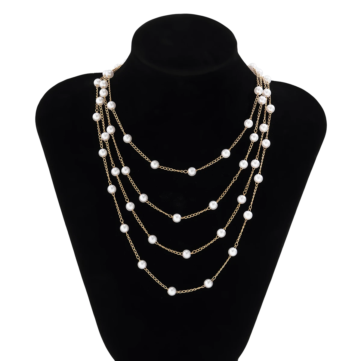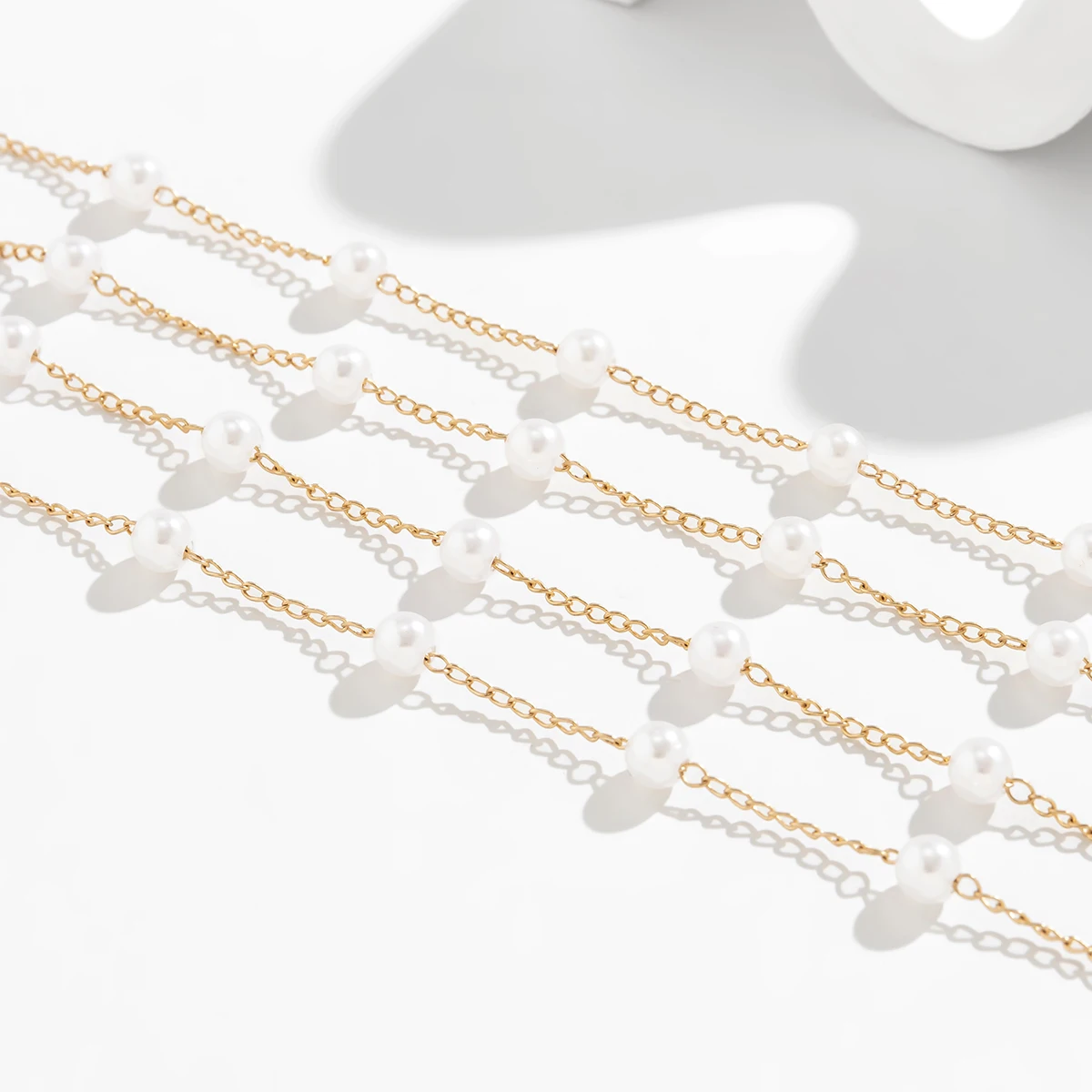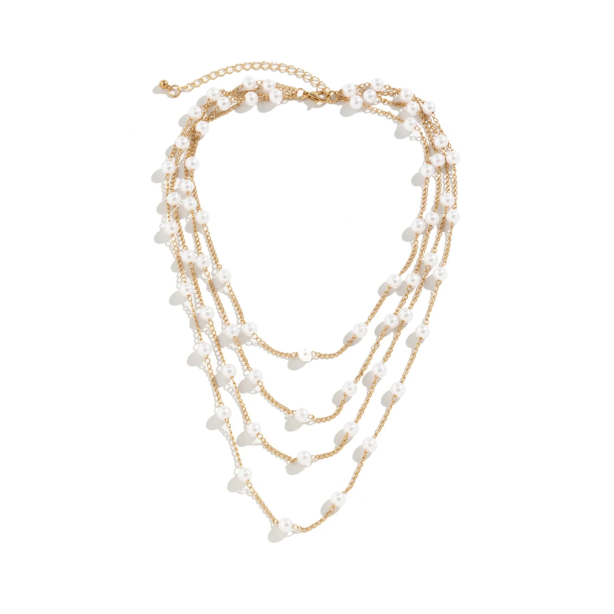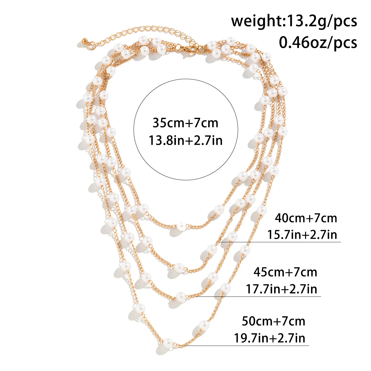 Kpop Multilayer Imitation-Pearl Choker Necklace for Women Vintage Gold Color Tassel Link Clavicle Chain Jewelry Wed Accessories