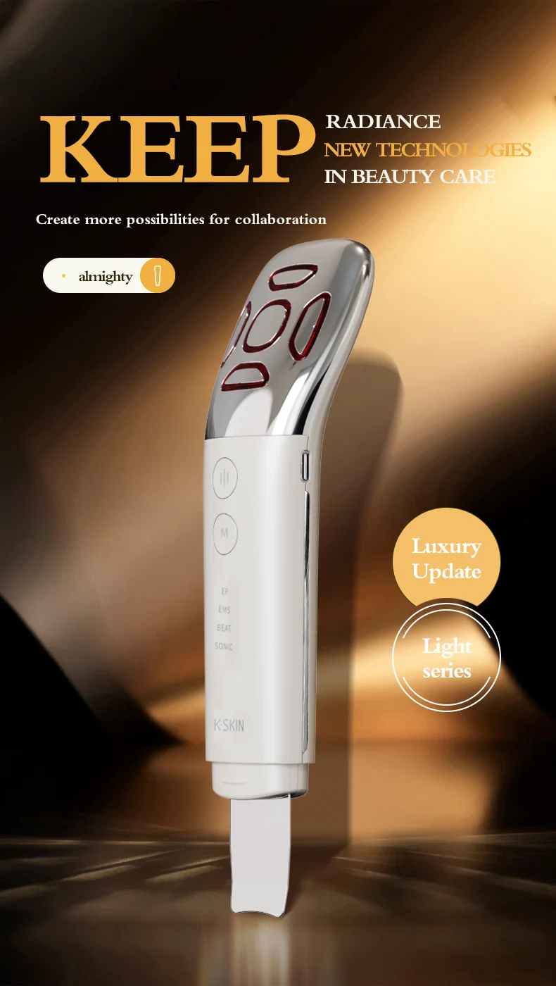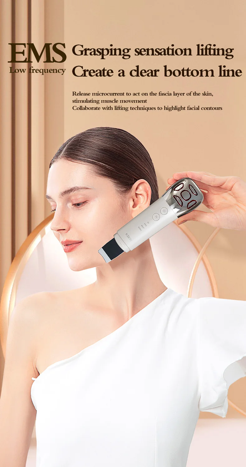 KSKIN Professional Electric Facial Dead Skin Peeling Sonic Cleaning LED Warm Ultrasonic Skin Scrubber