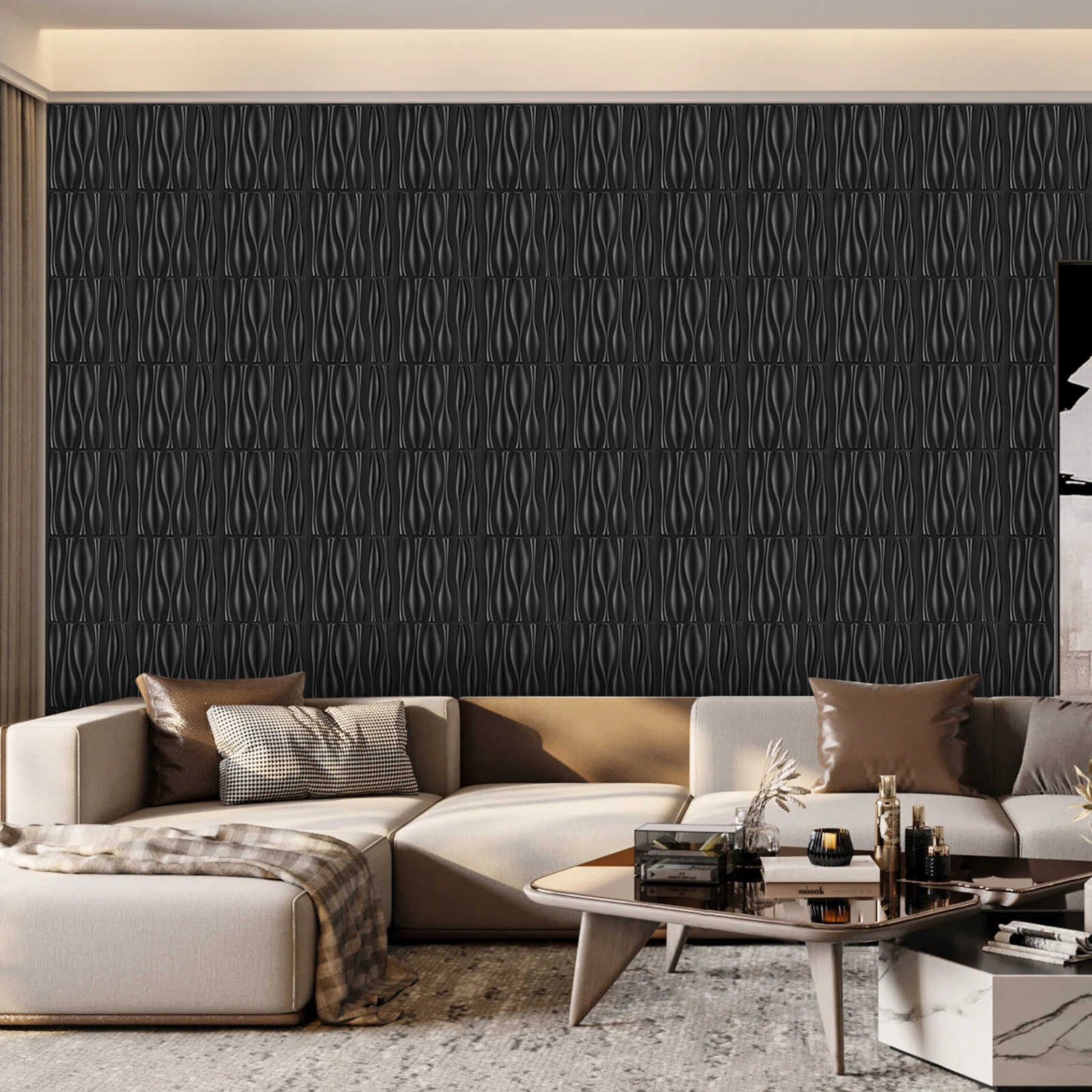 KUUJOJO 12pcs 3D textured wall panel for indoor wall decoration, suitable for living room, hall, bedroom, hotel, office