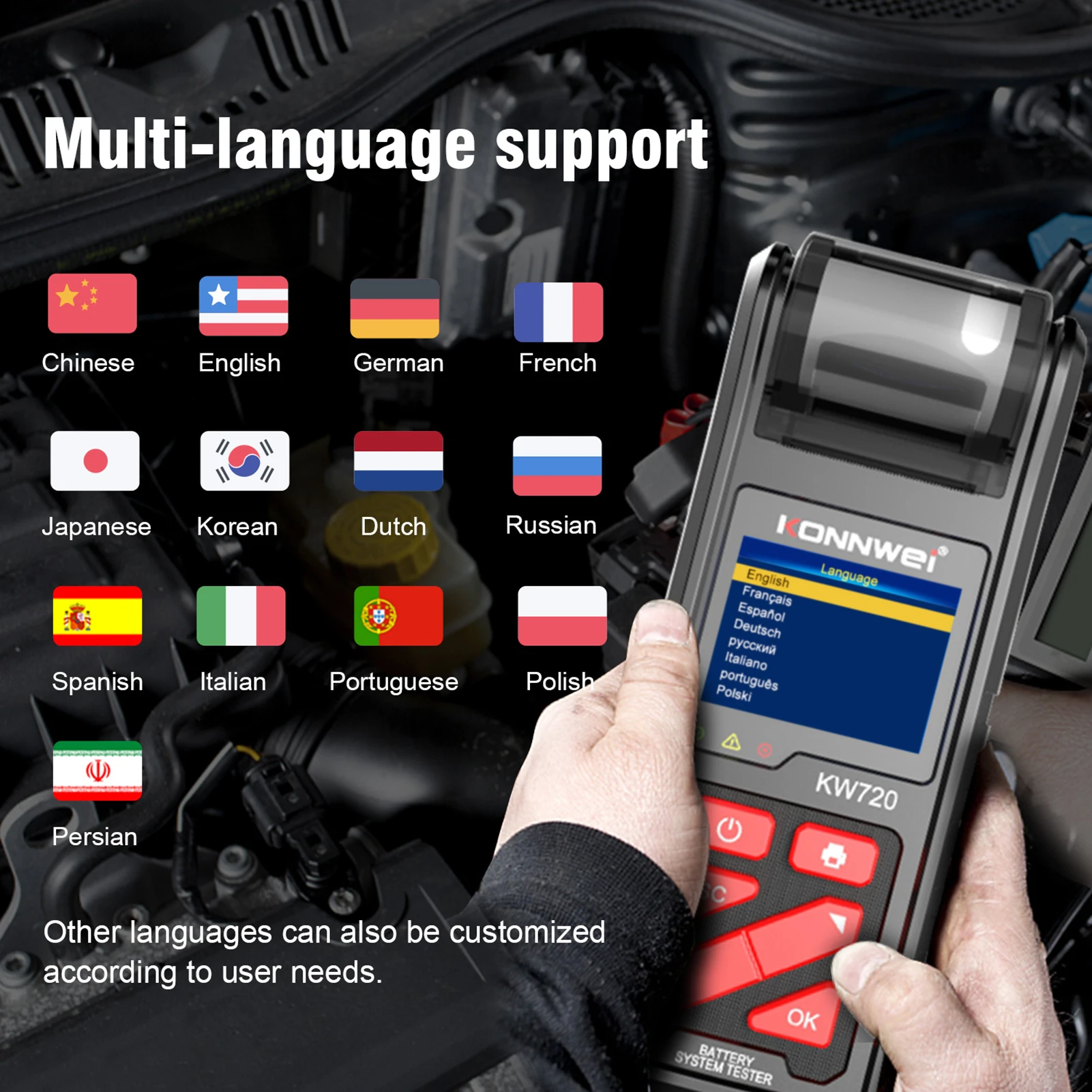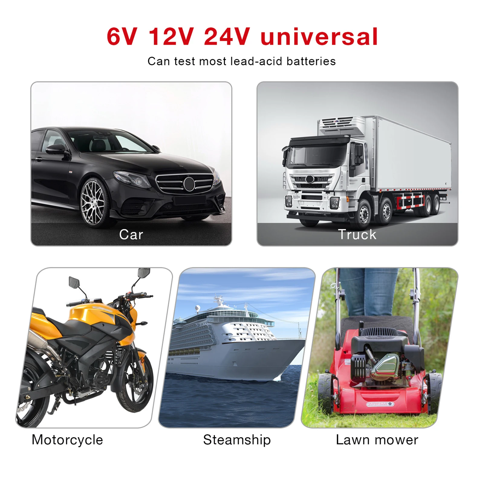 Wide Range of Application: it can test all 6V, 12V, 24V automotive cranking lead acid battery, including ordinary lead acid battery, AGM flat plate battery, AGM spiral battery, and Gel battery, etc.