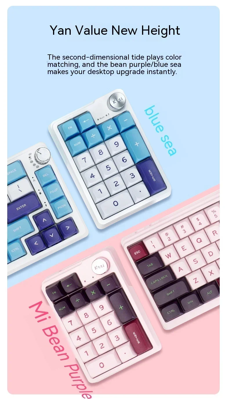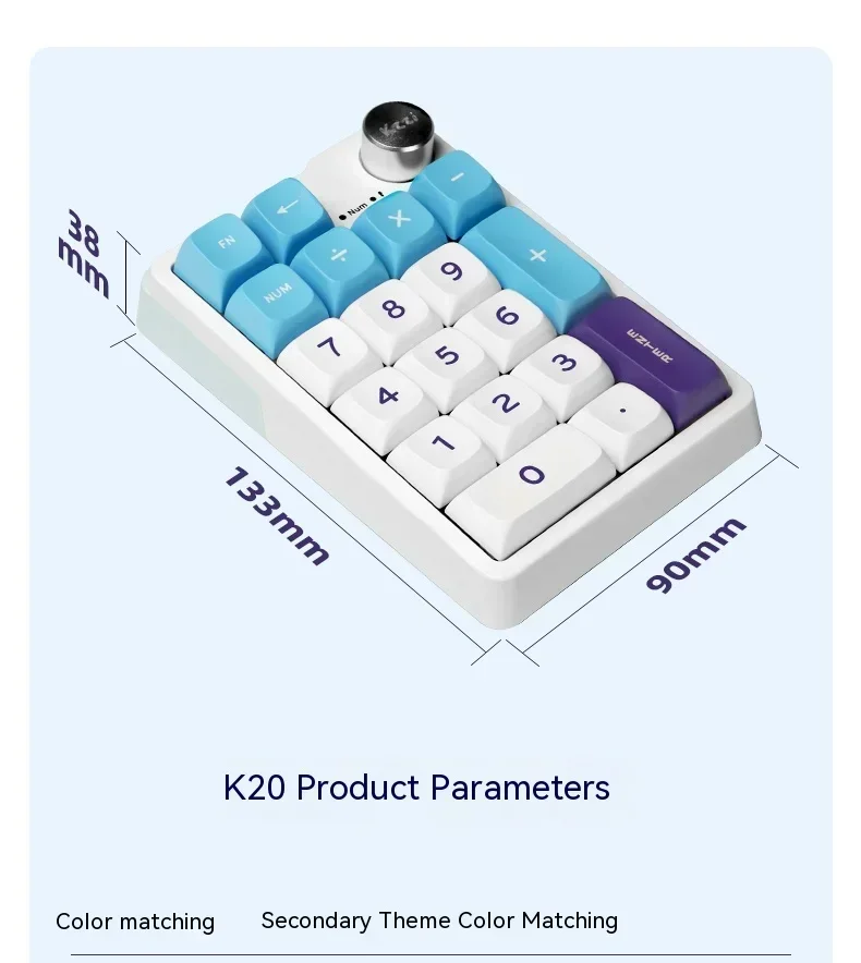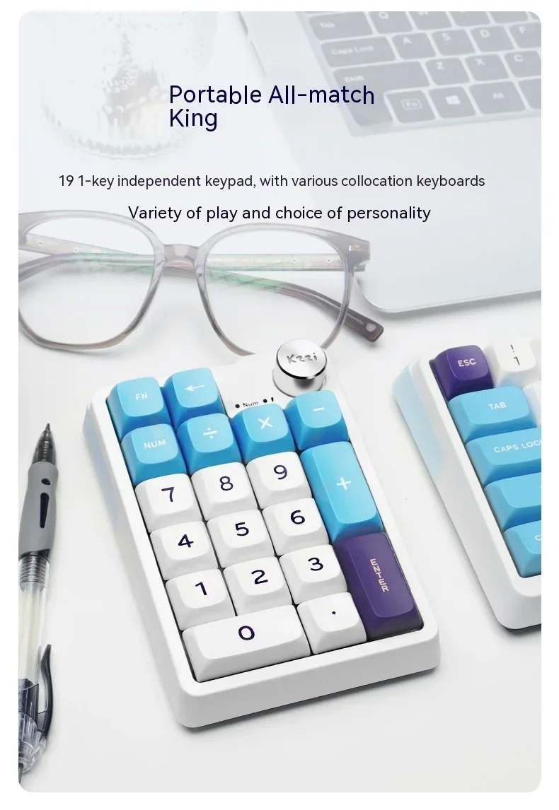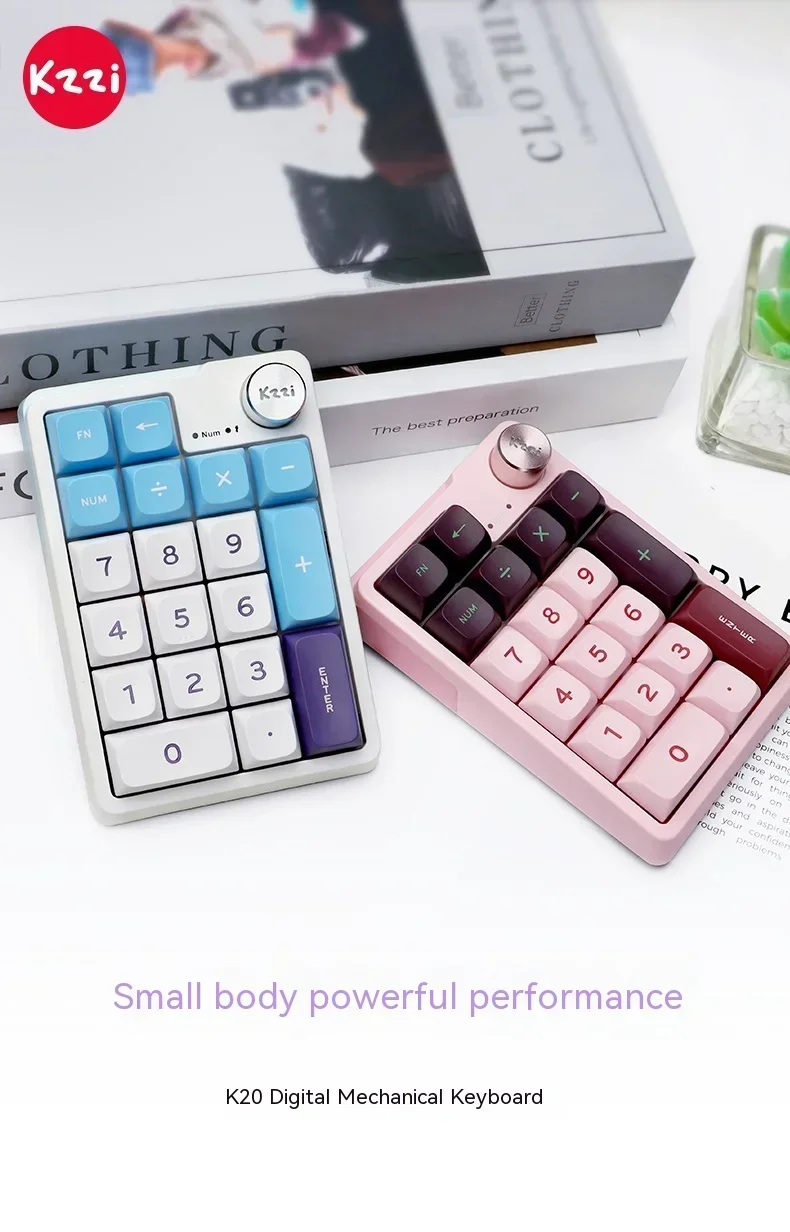 Kzzi K20 Mini Keyboard Wireless Number Pad 3-Mode RGB Gasket Hot Swap Customized Office Gaming Mechanical Keyboard Accessories