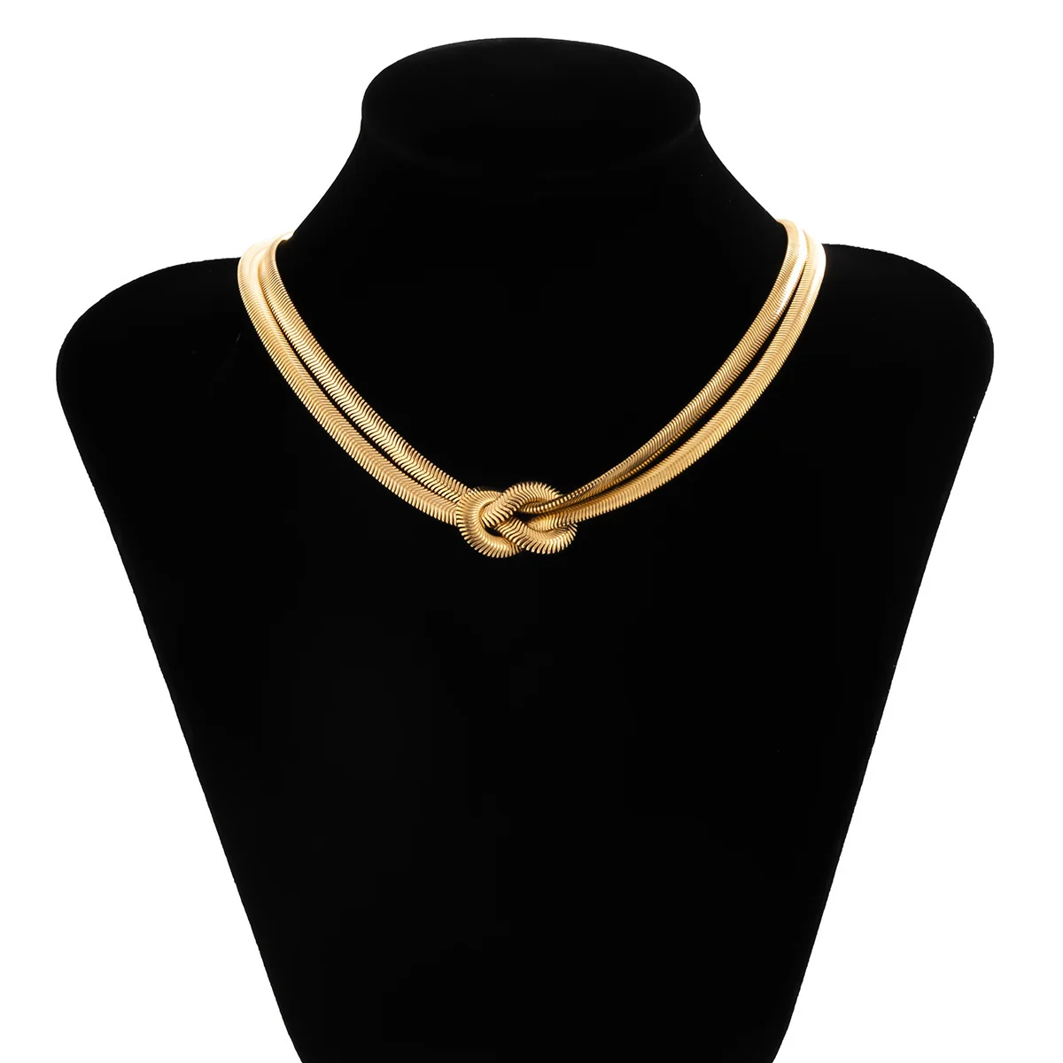 Lacteo Punk Hip Hop Gold Color Flat Snake Chain Necklace for Women Vintage Double Layer Clavicle Choker Necklaces Jewelry Gifts