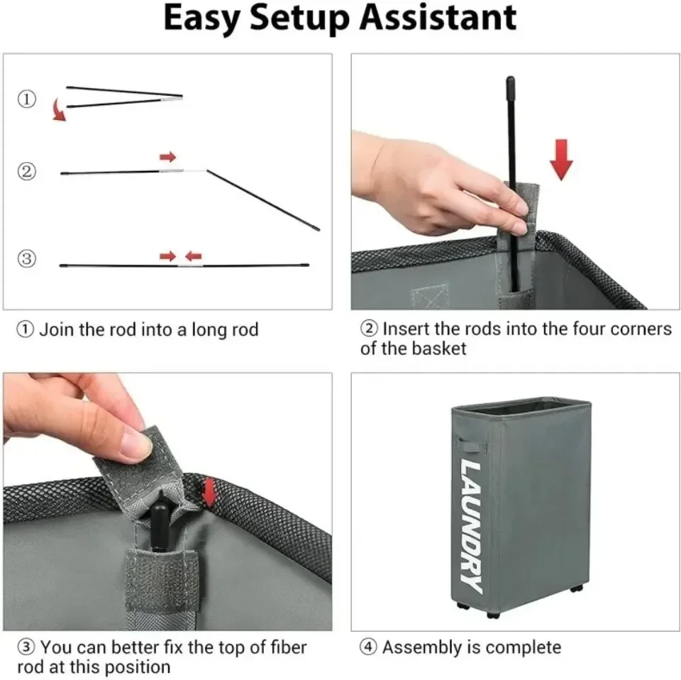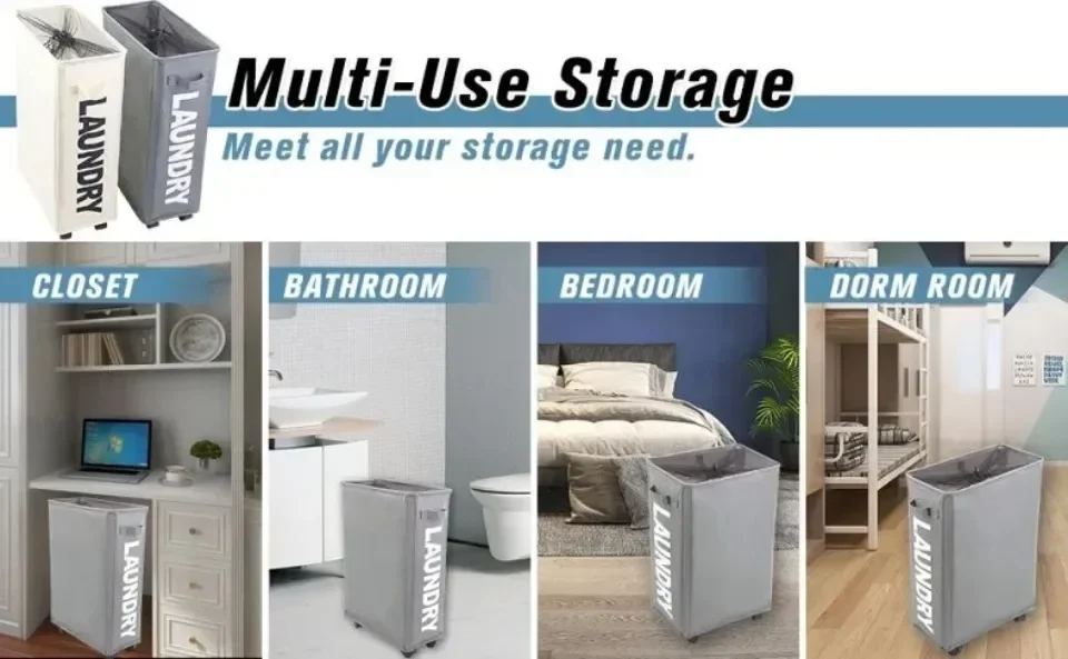 Laundry Basket Large Slim Folding Hamper On Wheels Rolling Dirty Clothes Storage Bin Foldable Household Yoga Organizer Basket
