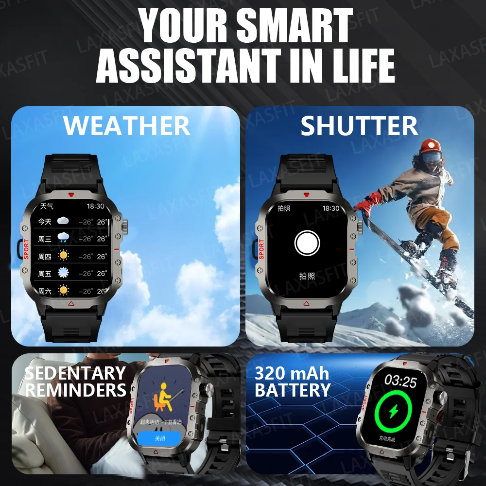 LAXASFIT unique customized smart watch is extremely rugged with the combination of a large 2.01inch(5.08cm) HD display and Great for sports.