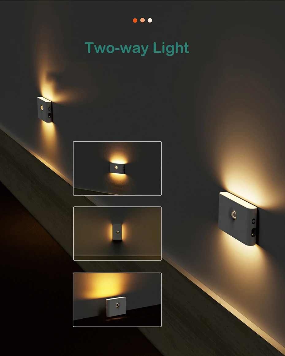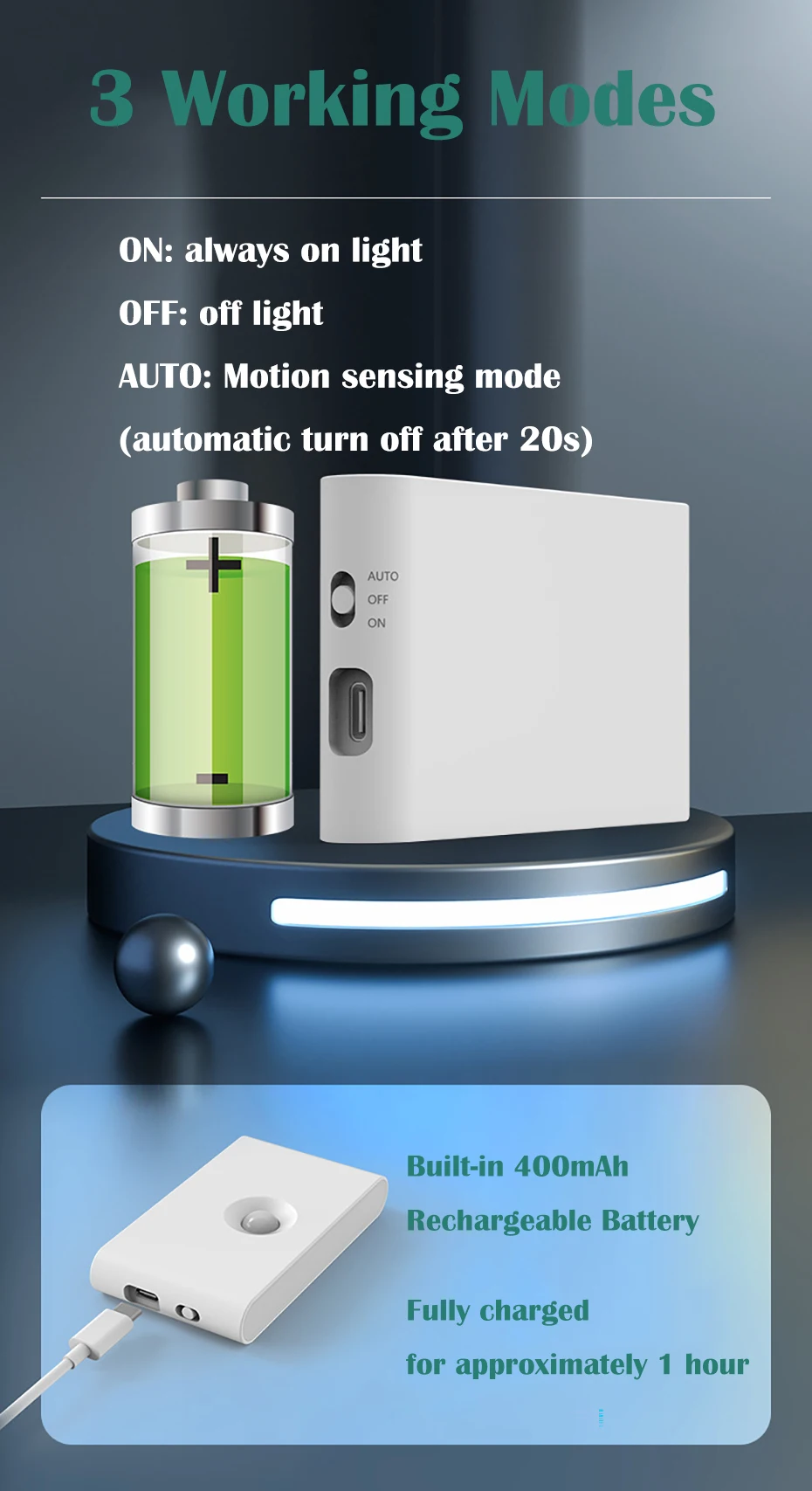 AUTO: Automatic sensing mode, in bright and dark environments, when a person enters the sensing range, it will automatically light up, and when a person leaves the sensing range, the night light will automatically turn off after 20 seconds.
