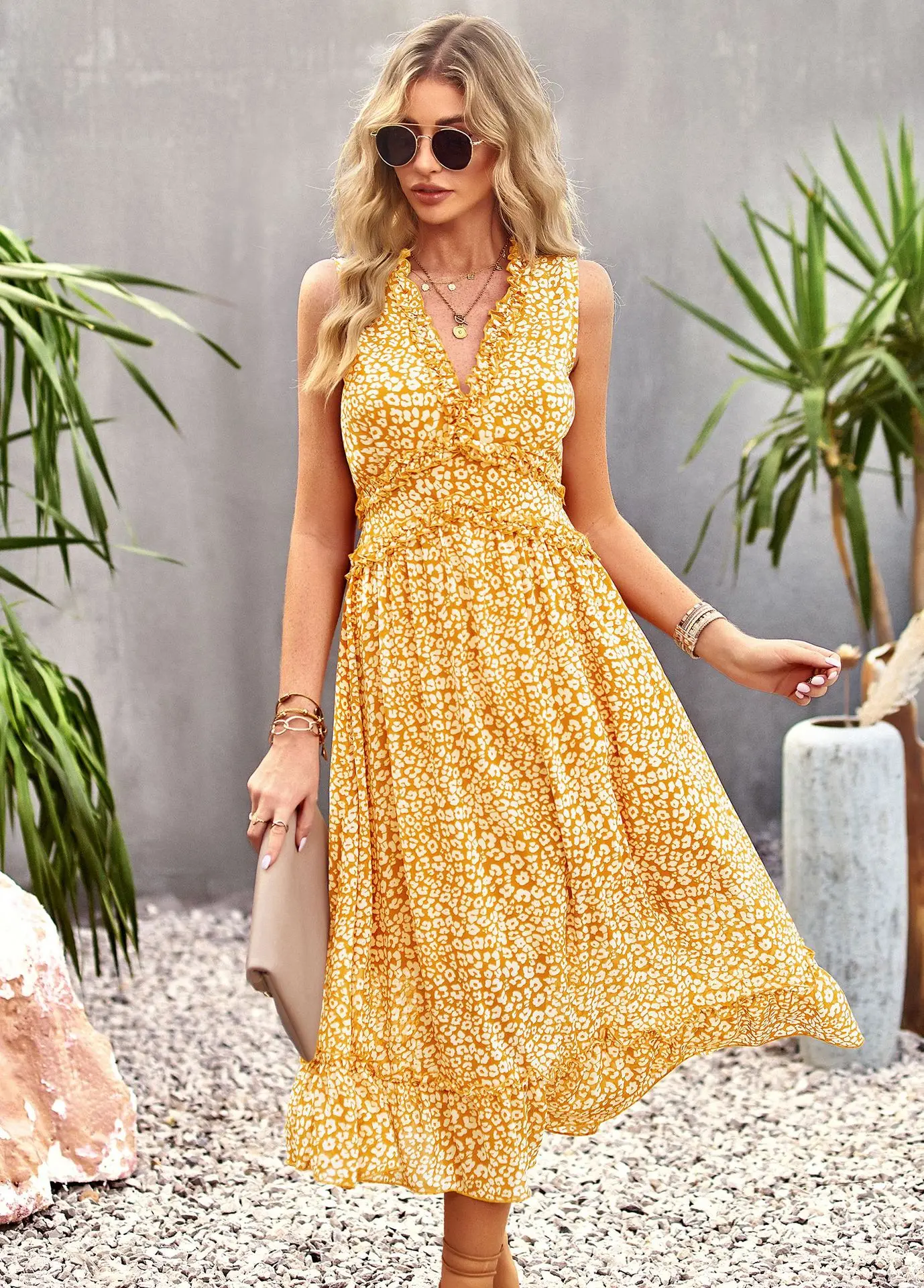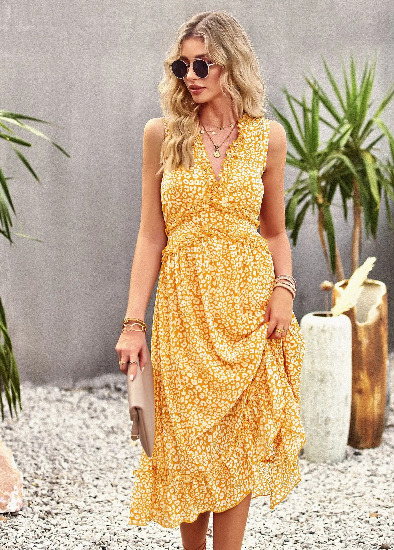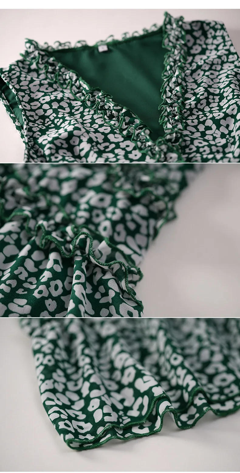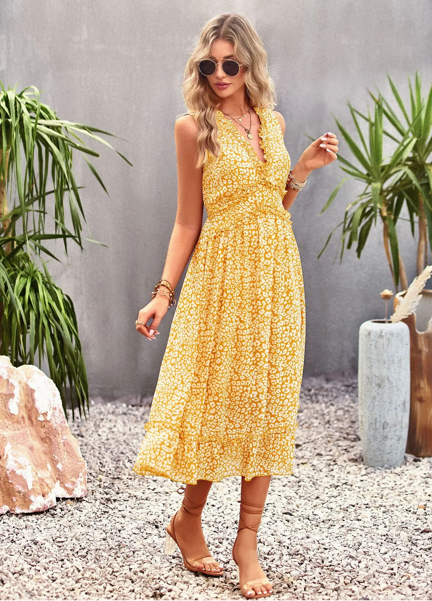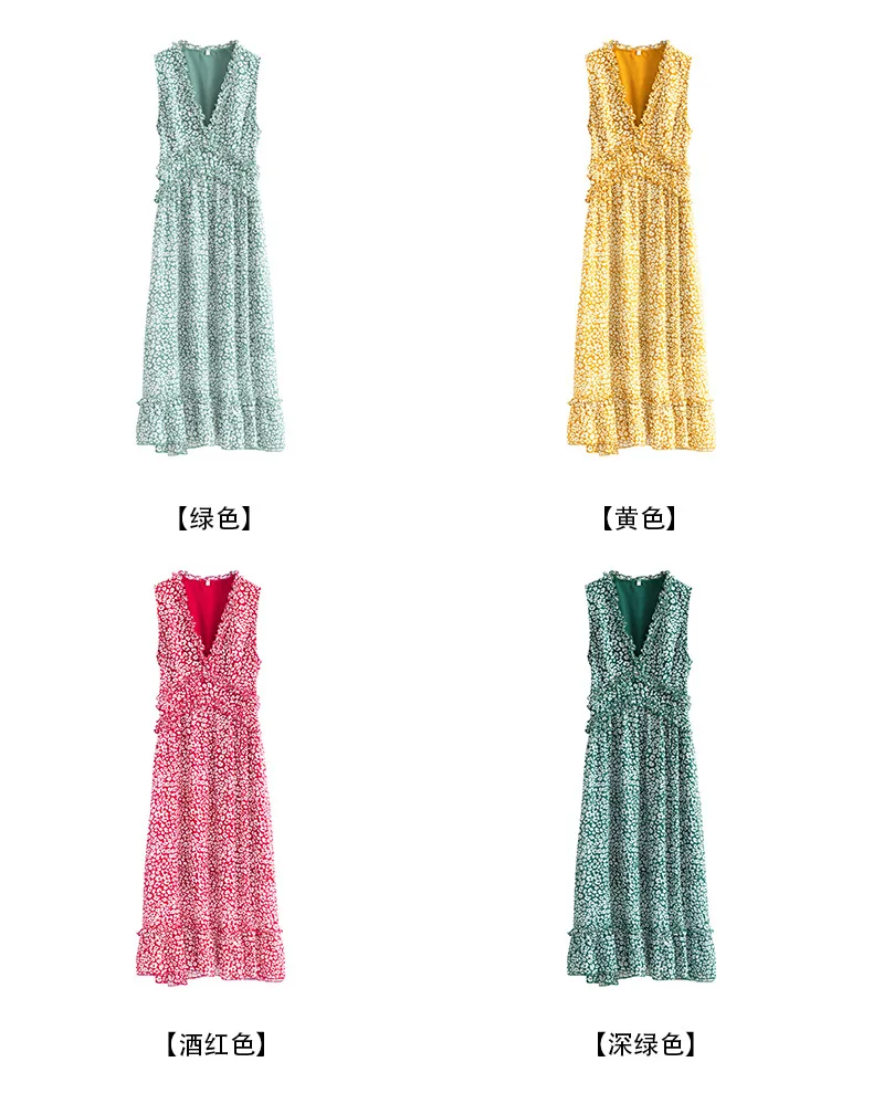Leisure Holiday Ruffle V-neck Sleeveless Dress Fashion Floral Seaside Vest Skirt 2023 Spring and Summer Sexy Women’s Dress