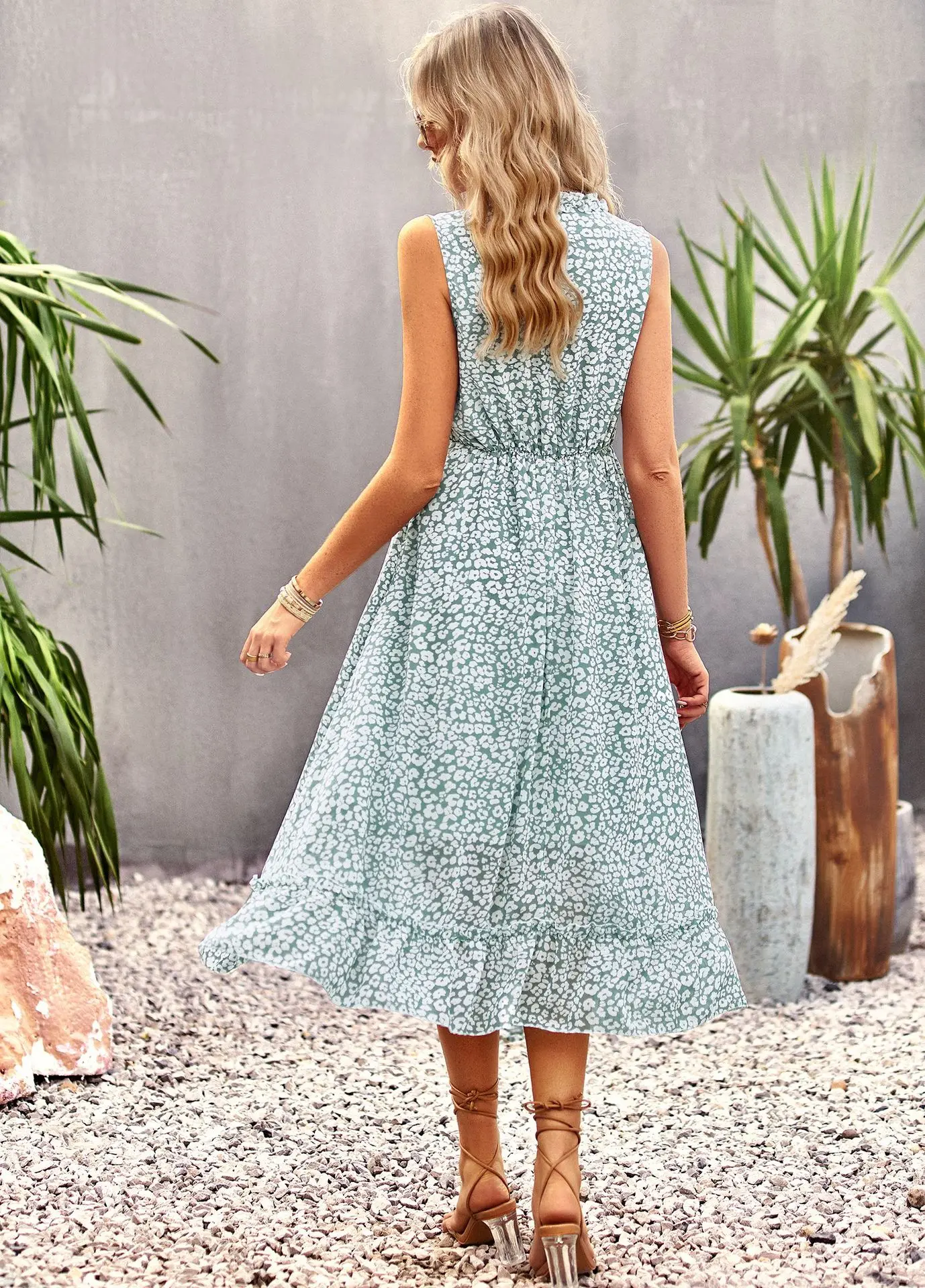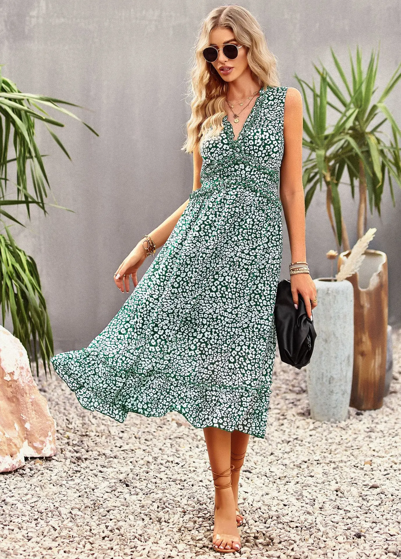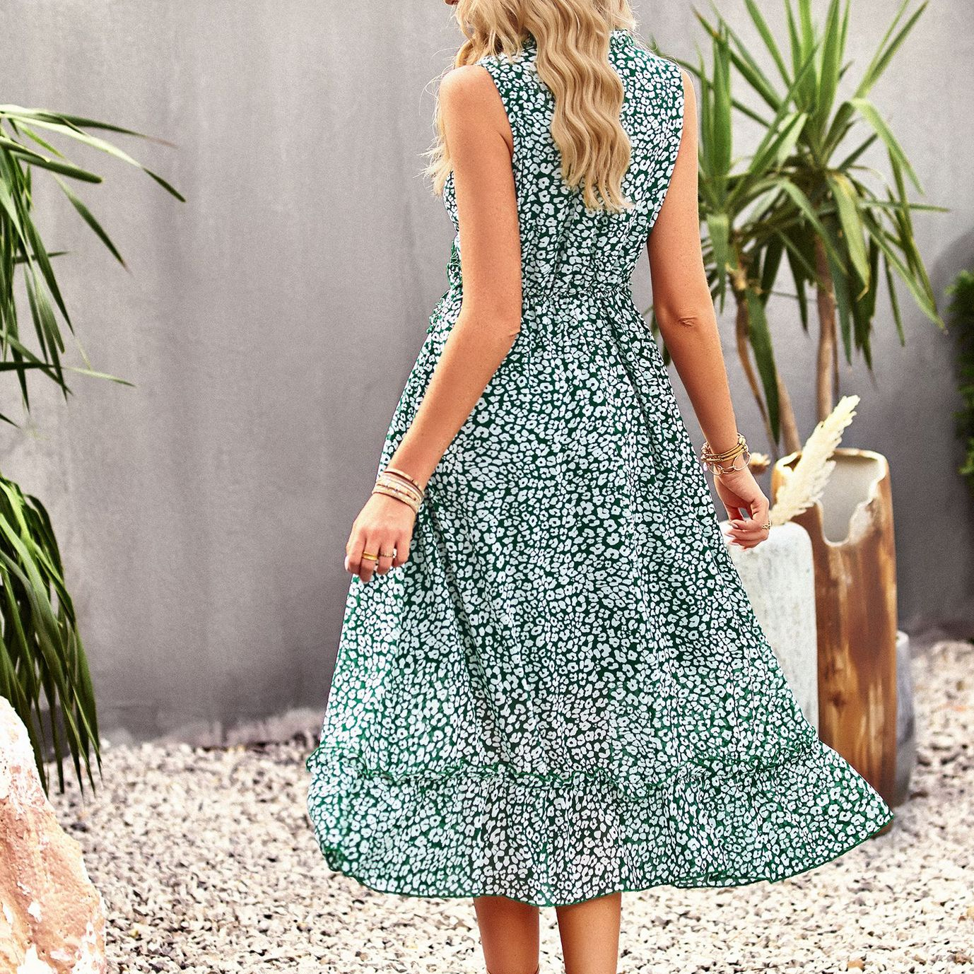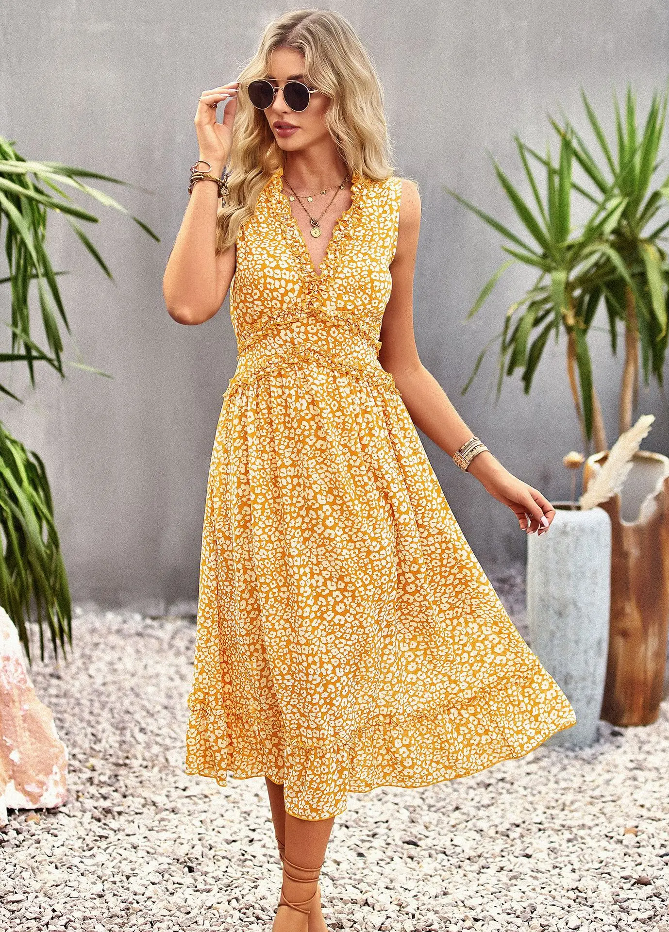 Leisure Holiday Ruffle V-neck Sleeveless Dress Fashion Floral Seaside Vest Skirt 2023 Spring and Summer Sexy Women’s Dress