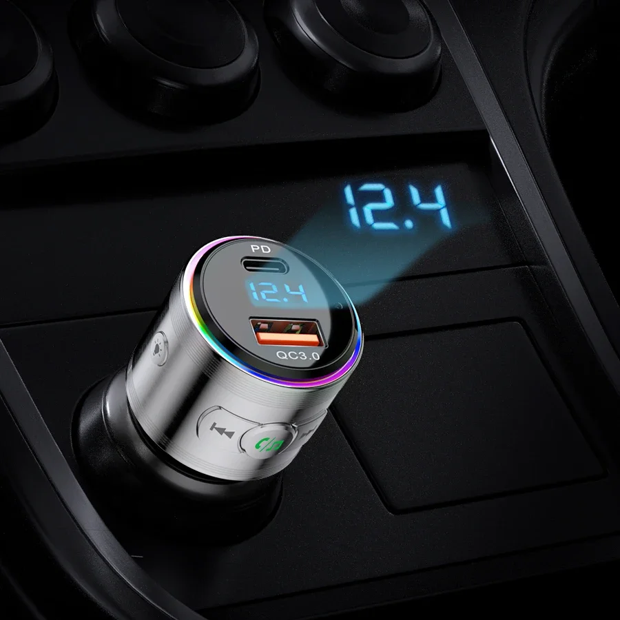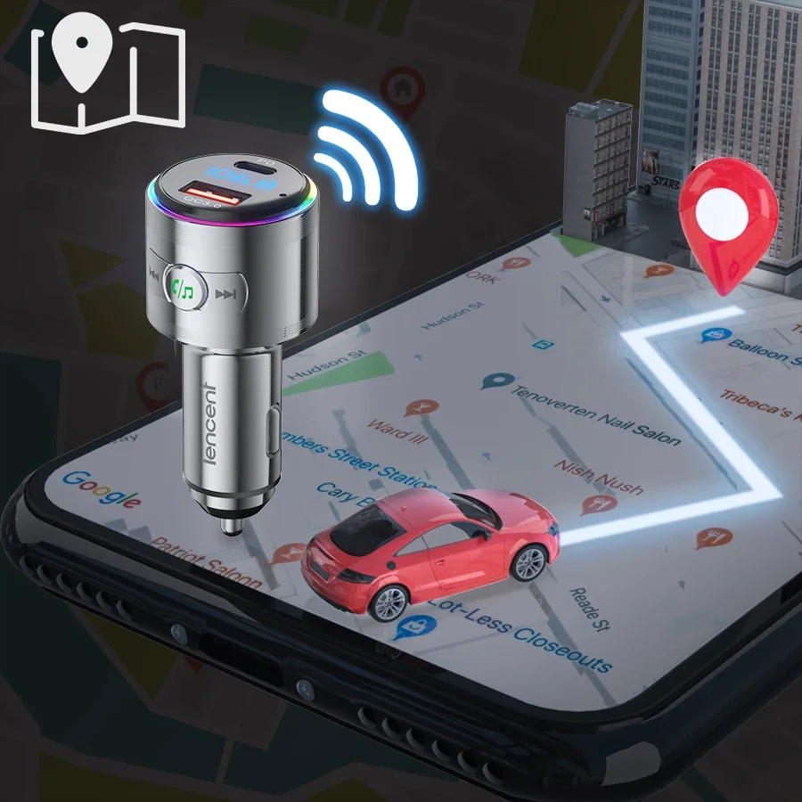 LENCENT Bluetooth 5.3 FM Transmitter Full Metal Bluetooth Car Adapter with PD 20W & QC3.0 Fast Charger Hi-Fi Music Adapter