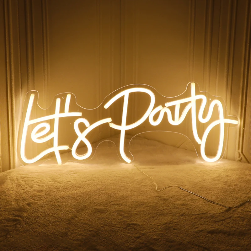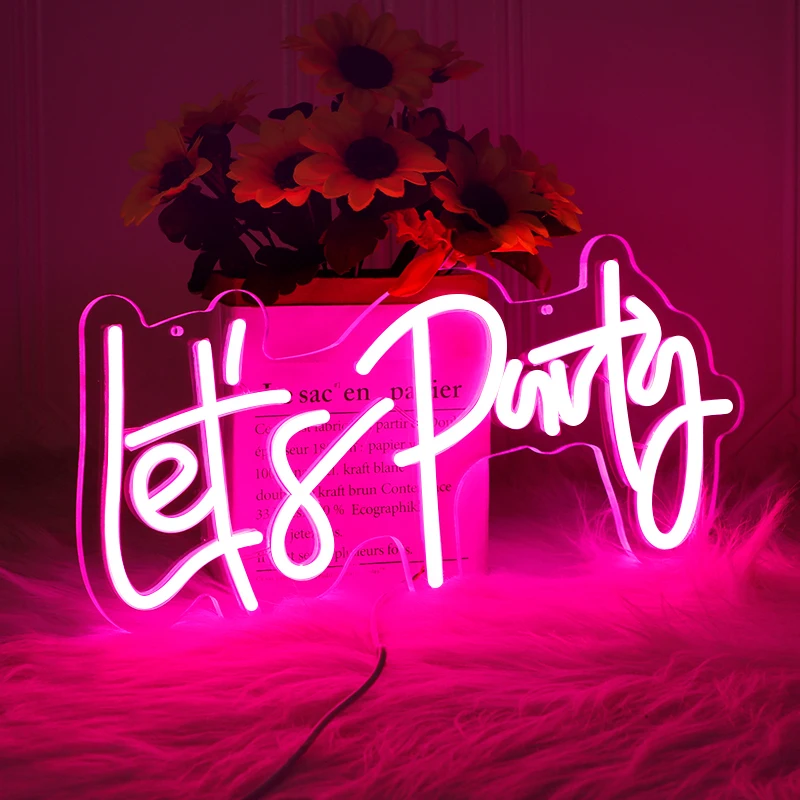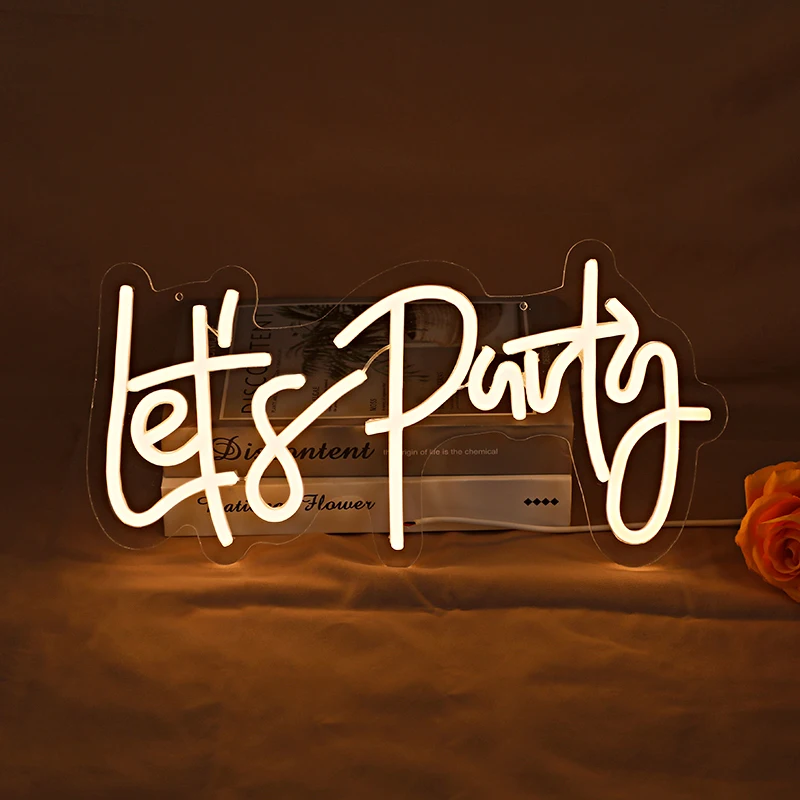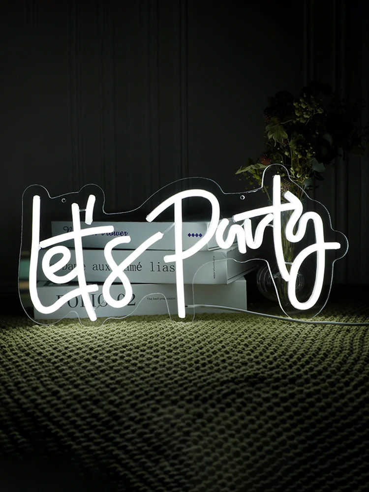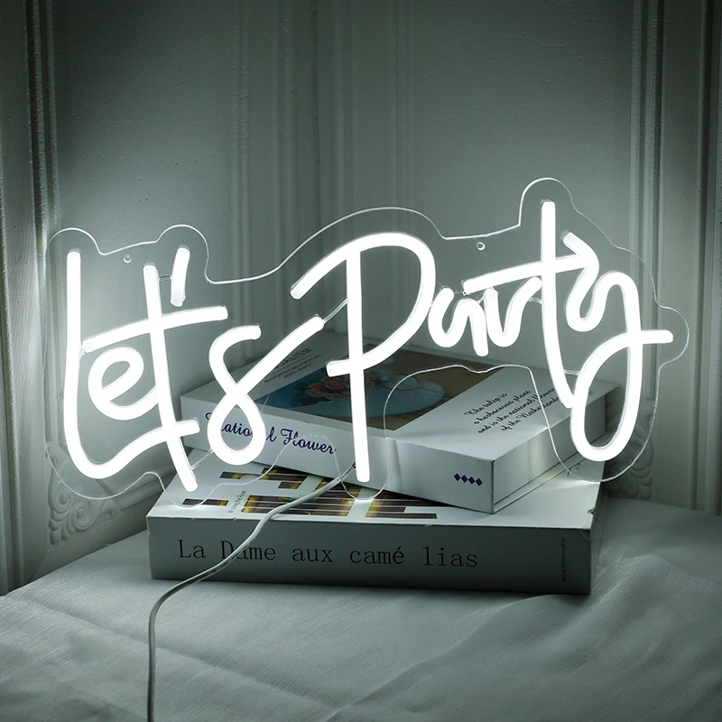 Lets Party Neon Sign LED Lamps Garden Birthday Celebrate Bar Shop Club Pub Prom Party Aesthetic Art Wall Decor Gift USB Lamps