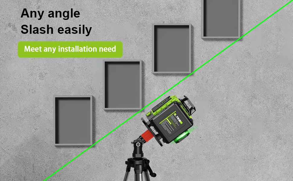 Lfine laser level featuring four 360 planes of laser light.For ceiling installation,the top 360°horizontal line will be an ideal assistant tool,the 360° horizontal floor laser line can be used to install tile.The 360° floor laser level can travel past obstacles between 1″ and 3.54″ in height by lifting from the surface with the lifting base. User can quickly visualize and complete square layout by utilizing two 360° vertical lines that intersect at 90° angles.
