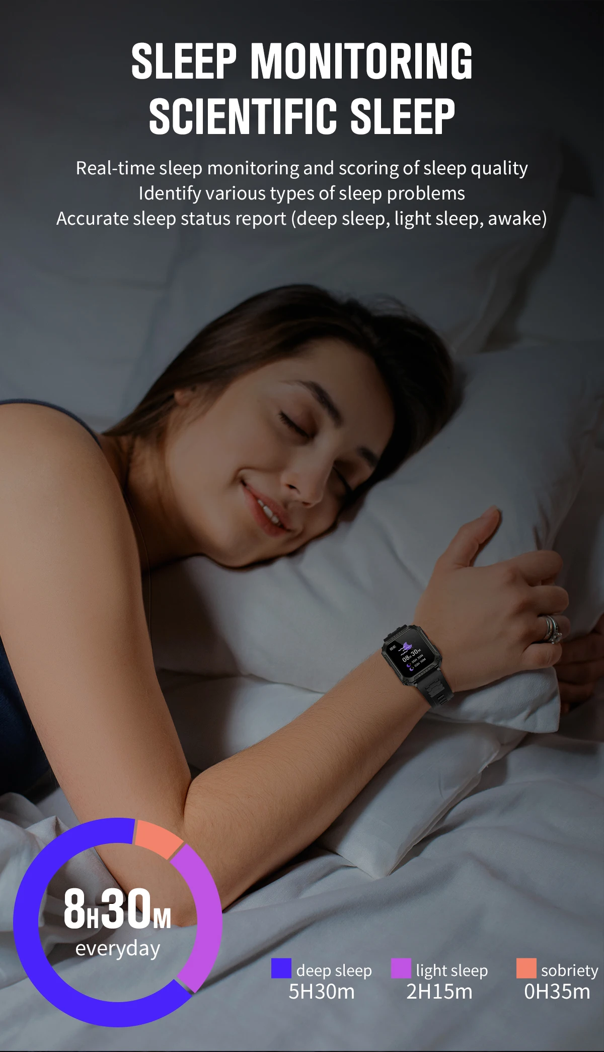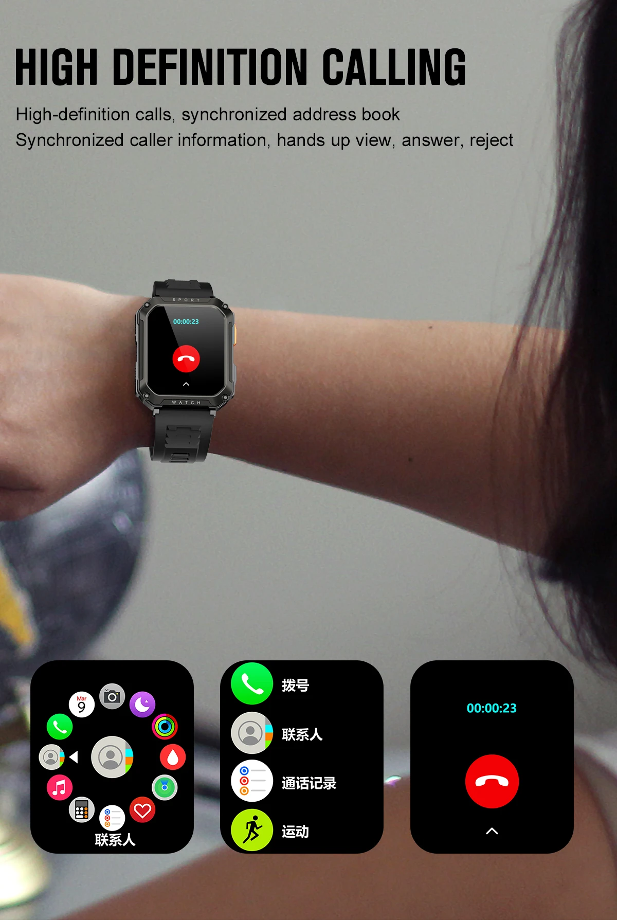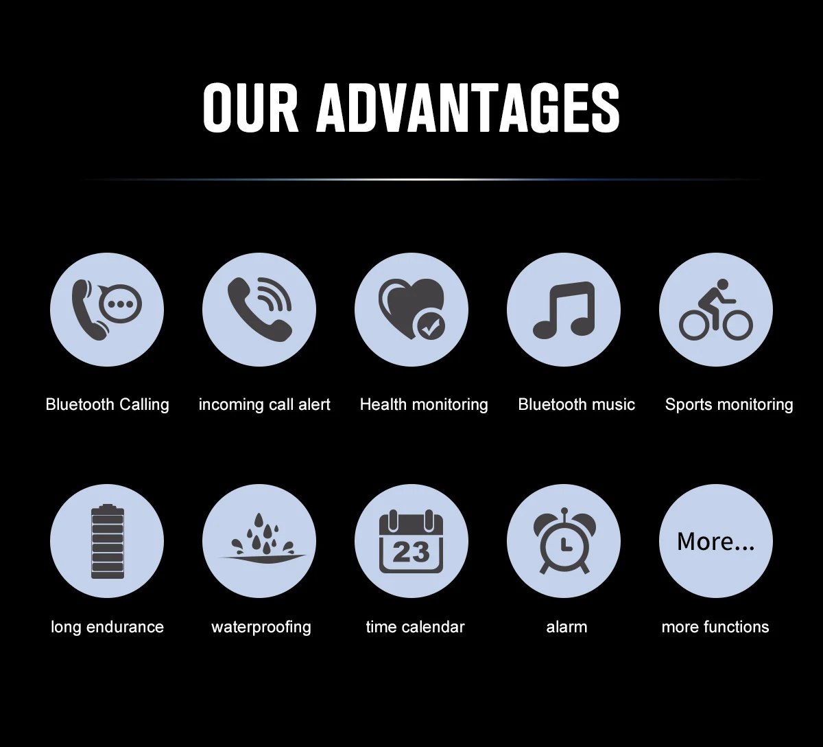 Multi-sport mode, AI voice assistant, custom watch face, music playback, voice call, hour measurement, mini-game, heart rate, weather, blood pressure, step counting, blood oxygen, distance, calculator, hand light screen, APP movement track, sleep monitoring, remote photo, call reminder, find bracelet, message reminder, time synchronization, sedentary reminder, stopwatch, alarm clock reminder, Contacts sync, calendar, flashlight
