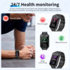 Answer, make calls, switch between multiple dials, self-editing dials, language settings, call history, dial, contacts, call reminder, time display, timer (stopwatch, countdown), find bracelet, find mobile phone, weather, photo control , music control, turn your wrist to brighten the screen, time format switching, stress reduction sleep aid, flashlight, date and time, brightness adjustment, do not disturb mode, vibration switch, call Bluetooth switch, voice assistant, OTA, blood oxygen detection, blood pressure detection, Heart rate detection, sleep detection, sedentary reminder, menstrual cycle reminder, drinking water reminder, dial selection, all-day heart rate, QR code download, factory reset, pedometer, calorie display, distance