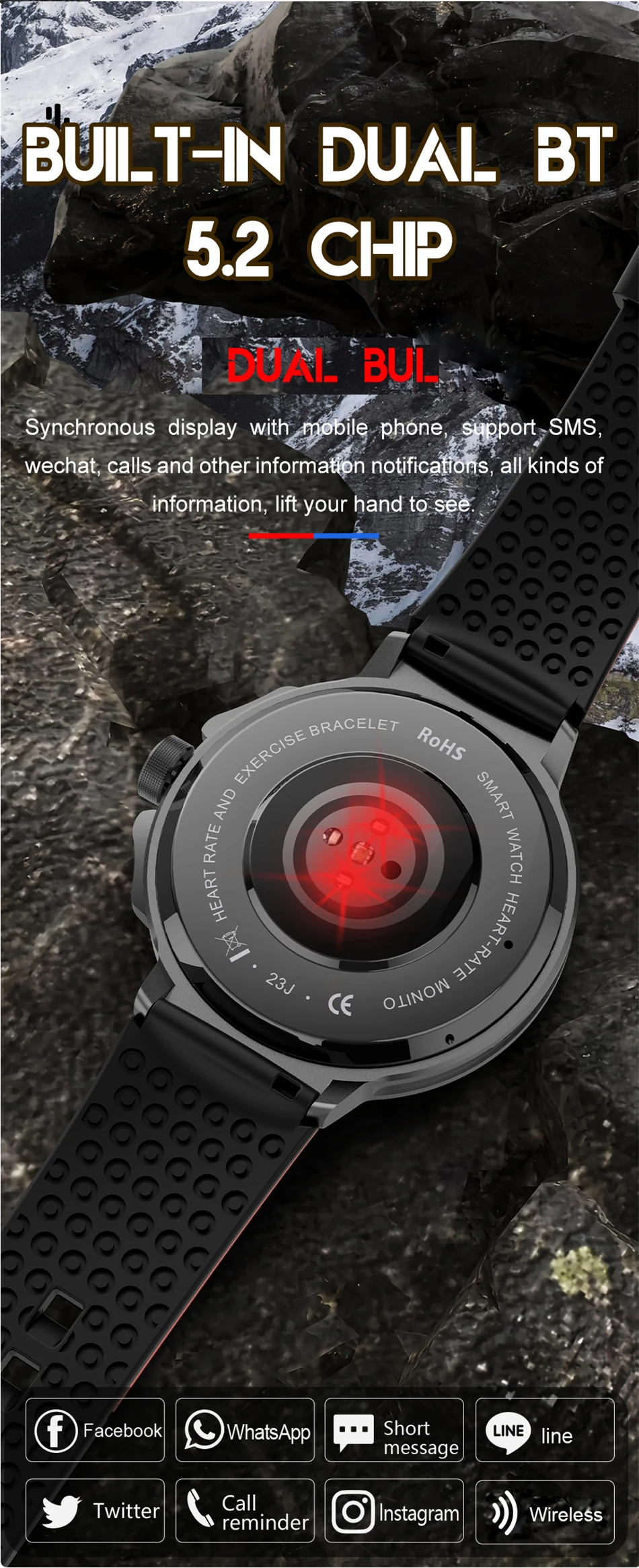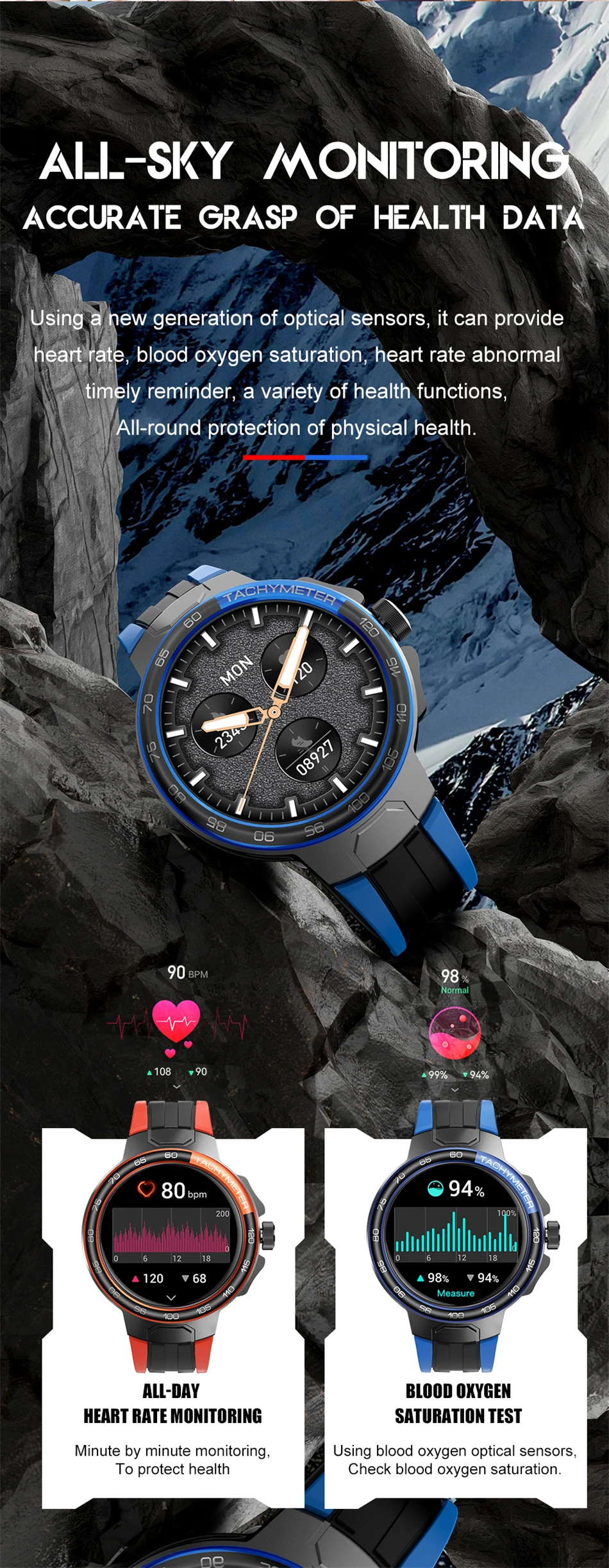 Dual Bluetooth chip call model, bracelet to play Bluetooth music and Bluetooth calls. 100+ sports modes, heart rate detection, blood pressure detection, blood oxygen red light detection, pedometer demei (hand ring to view recent data records) , Time and date display, step counting, calories, distance with screen display, bracelet SOS common contact function , Sleep monitoring (sleep time, sleep quality)