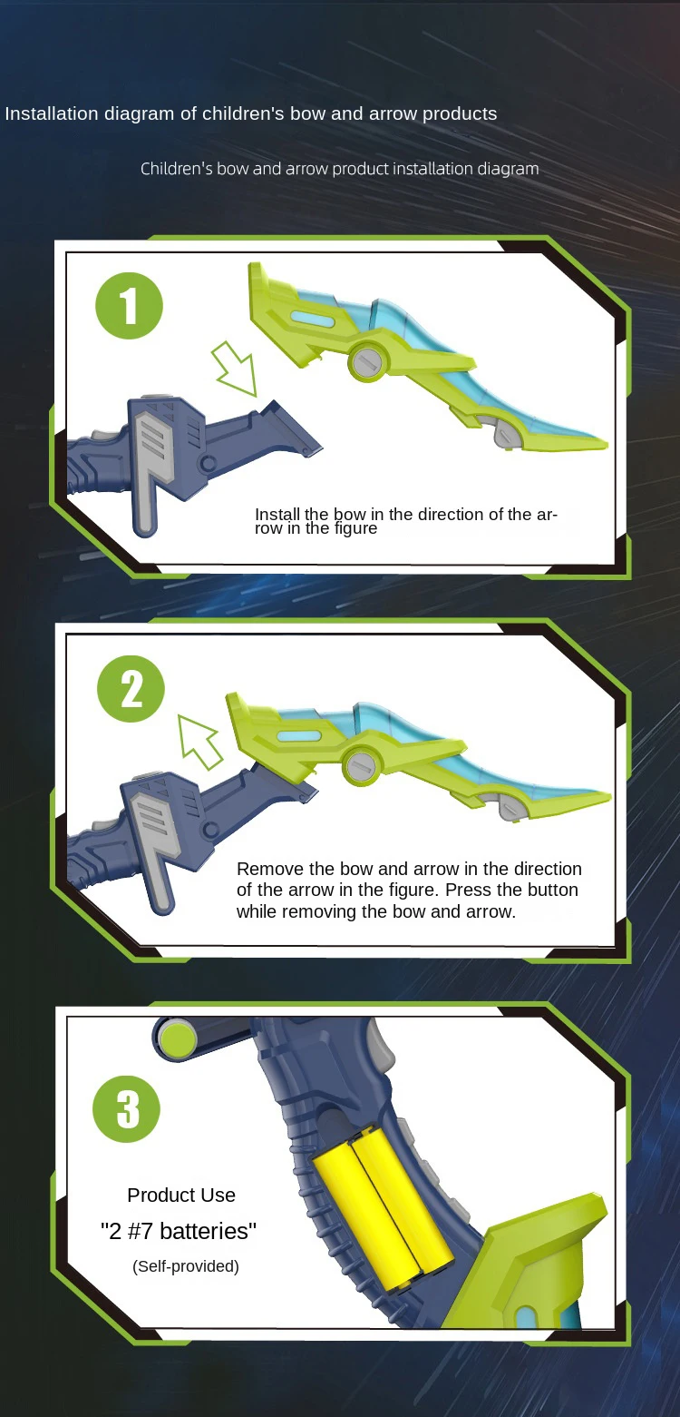 Function: manual assembly, light mode/suction cup arrow/long range shooting