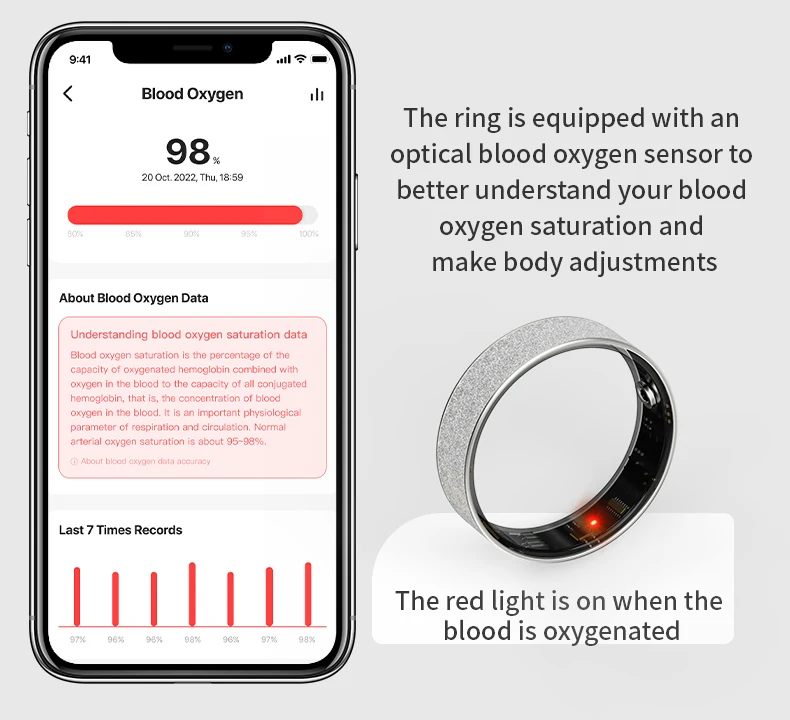 APP initiated blood oxygen test/recent 7 blood oxygen data/Recent 7 blood oxygen saturation measurement trend/historical blood