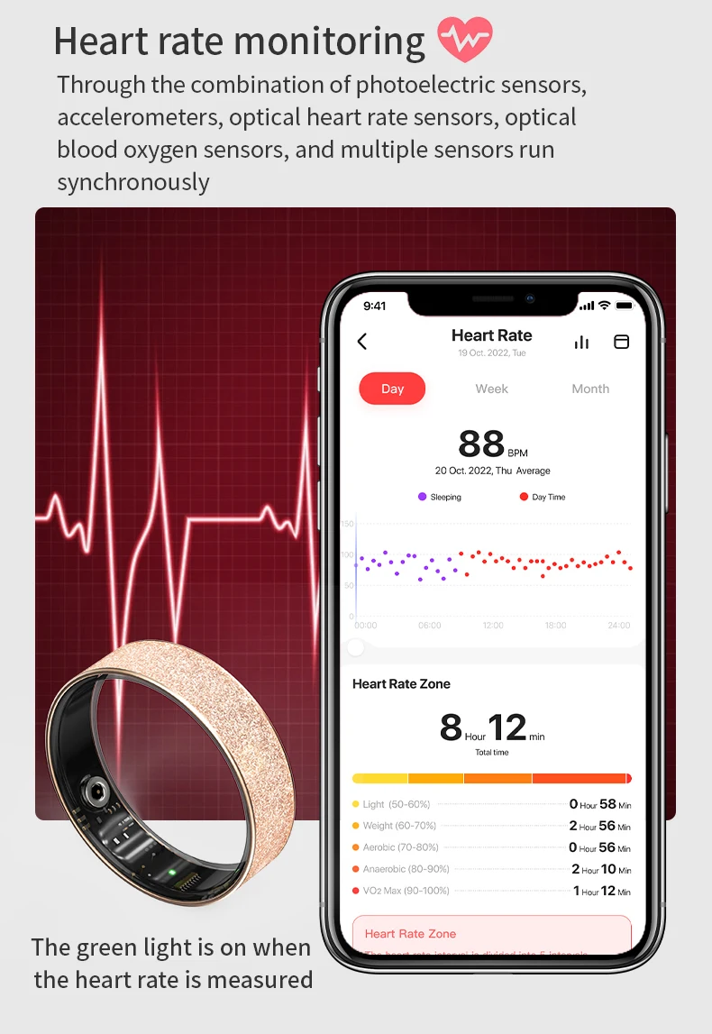 APP launches heart rate test/all-day dynamic heart rate trend and data analysis/heart rate data analysis/Recent 7 heart rate
