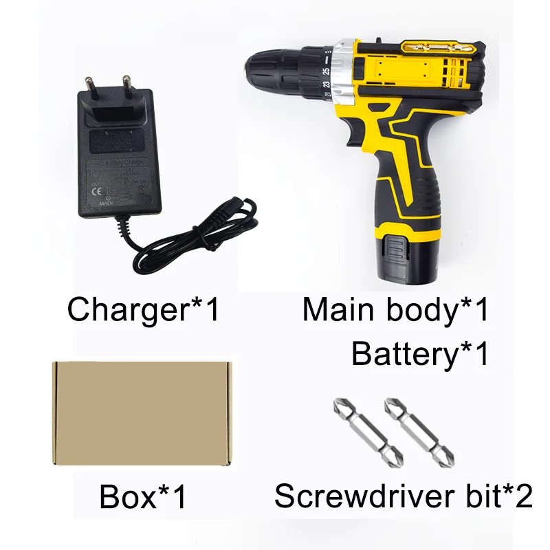 This 12V 2-in-1 electric tool combines the functions of an electric screwdriver and an electric drill. It can not only quickly tighten or loosen screws, but also drill holes in different materials, providing enough power to complete most household or industrial applications. There are two types of speed control modes, two speed control and continuous speed adjustment, to achieve the desired speed. Using an electric screwdriver can improve efficiency, reduce fatigue and time costs of manual operation. Suitable for tightening screws inside the room in any situation, such as lamp installation, household appliances, furniture assembly, door lock disassembly, etc. It can also be used to drill holes in various materials such as wood, metal, plastic boards, stone, and concrete.