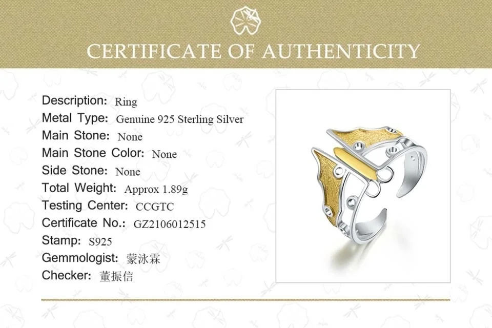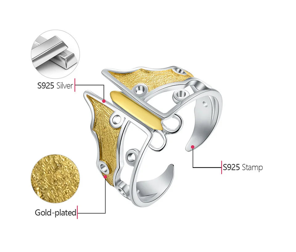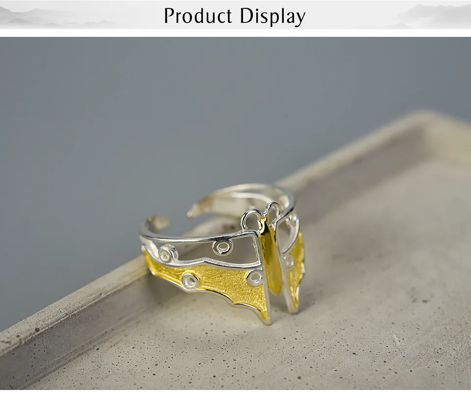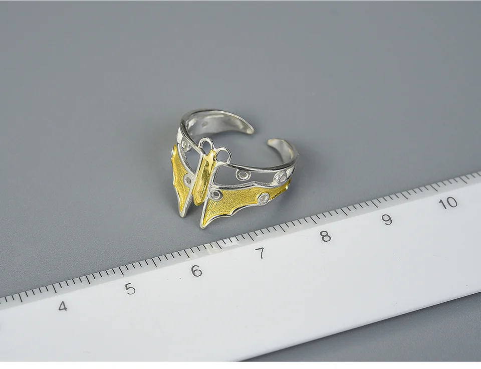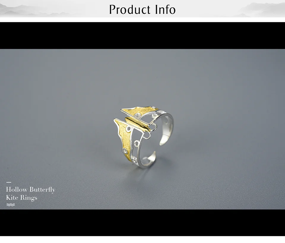 Lotus Fun Real 925 Sterling Silver Natural Handmade Designer Fine Jewelry Adjustable Hollow Butterfly Kite Rings for Women