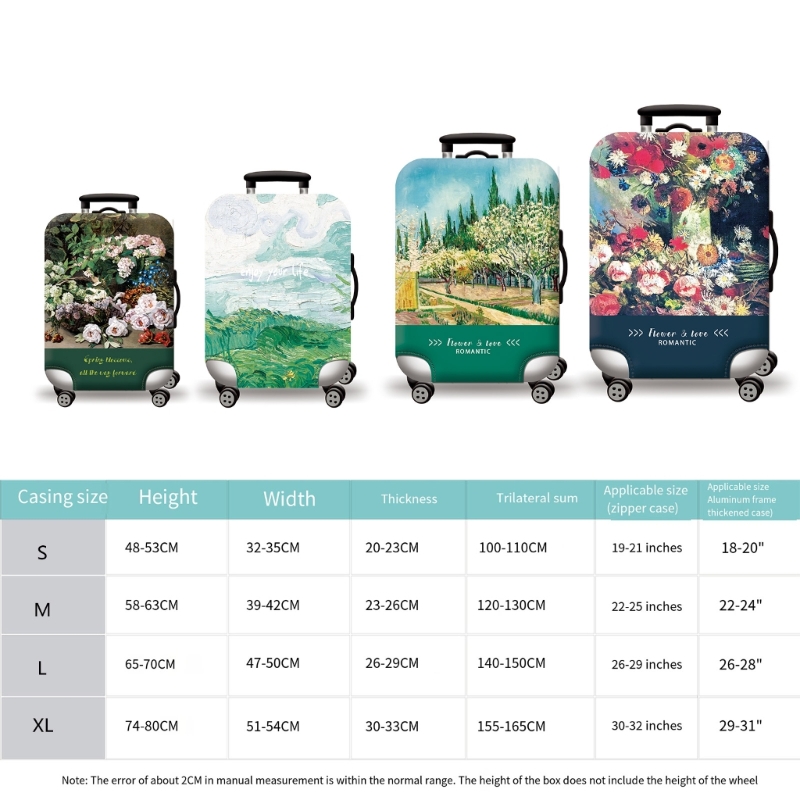XL: 74-80cm(Height); 51-54cm(Width); 30-33cm(Thickness); 155-165cm(Trilateral Sum); Applicable Size(Zipper Case): 30-32inches; Applicable Size(Aluminum Frame Thickened Case): 29-31inches