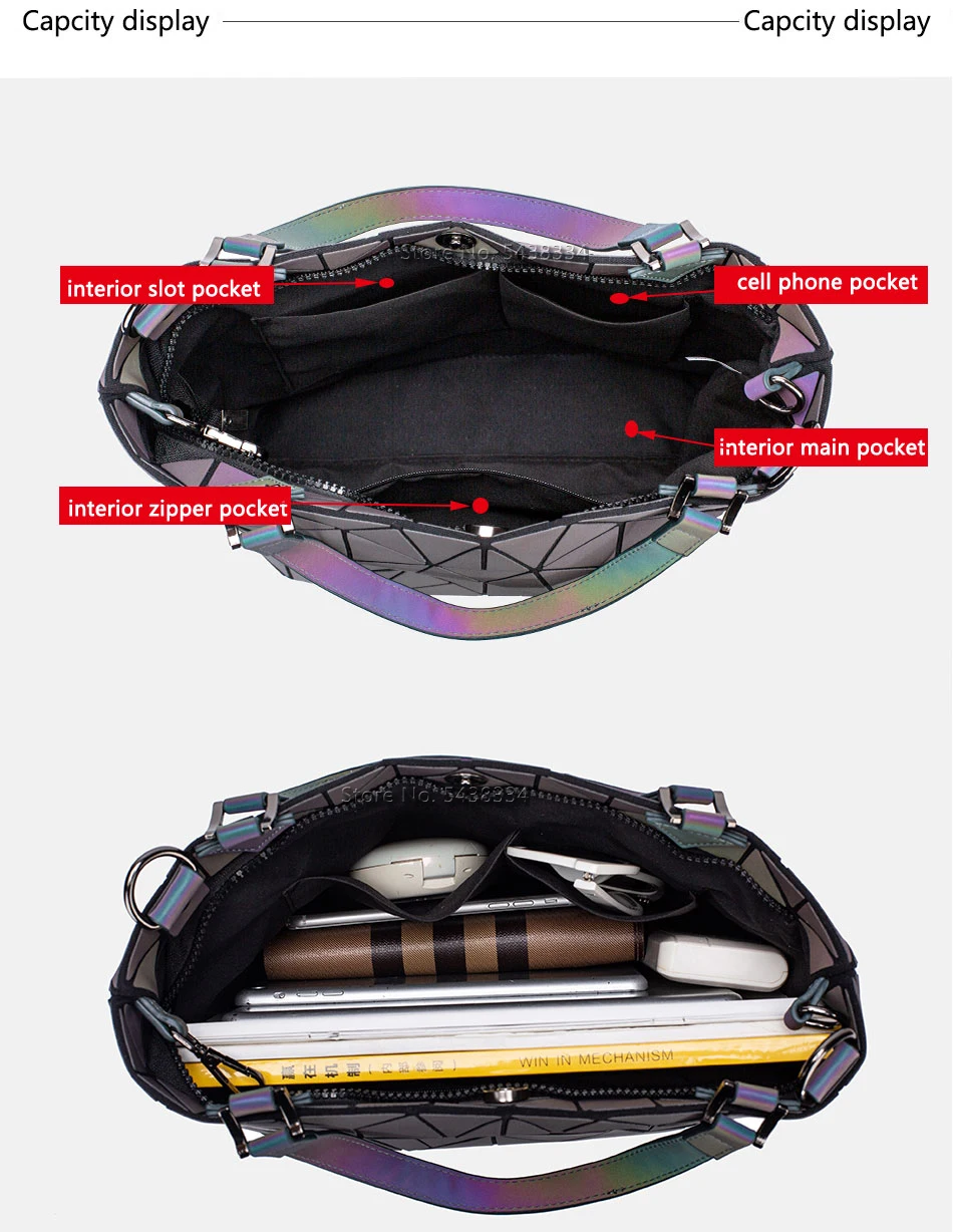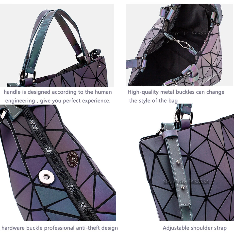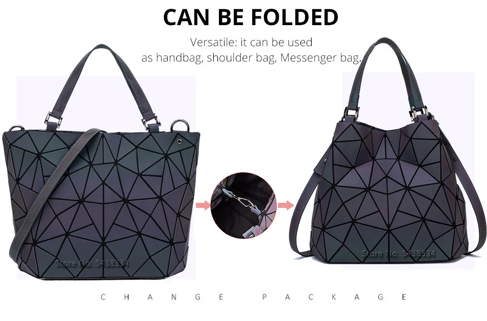 Luminous sac Sequins geometric bags women Quilted Shoulder Bags Laser Plain Folding Handbags bolso mujer tote bags