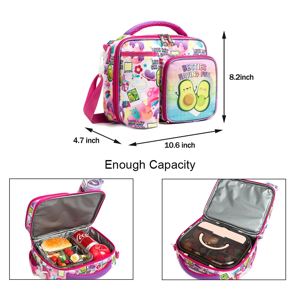 Lunch Bags Cute Food Bags for Kids Girls Large Capacity Bolsas De Almuerzo Lunch Box with Bottle Pocket Shoulder Lunch Bags 2022
