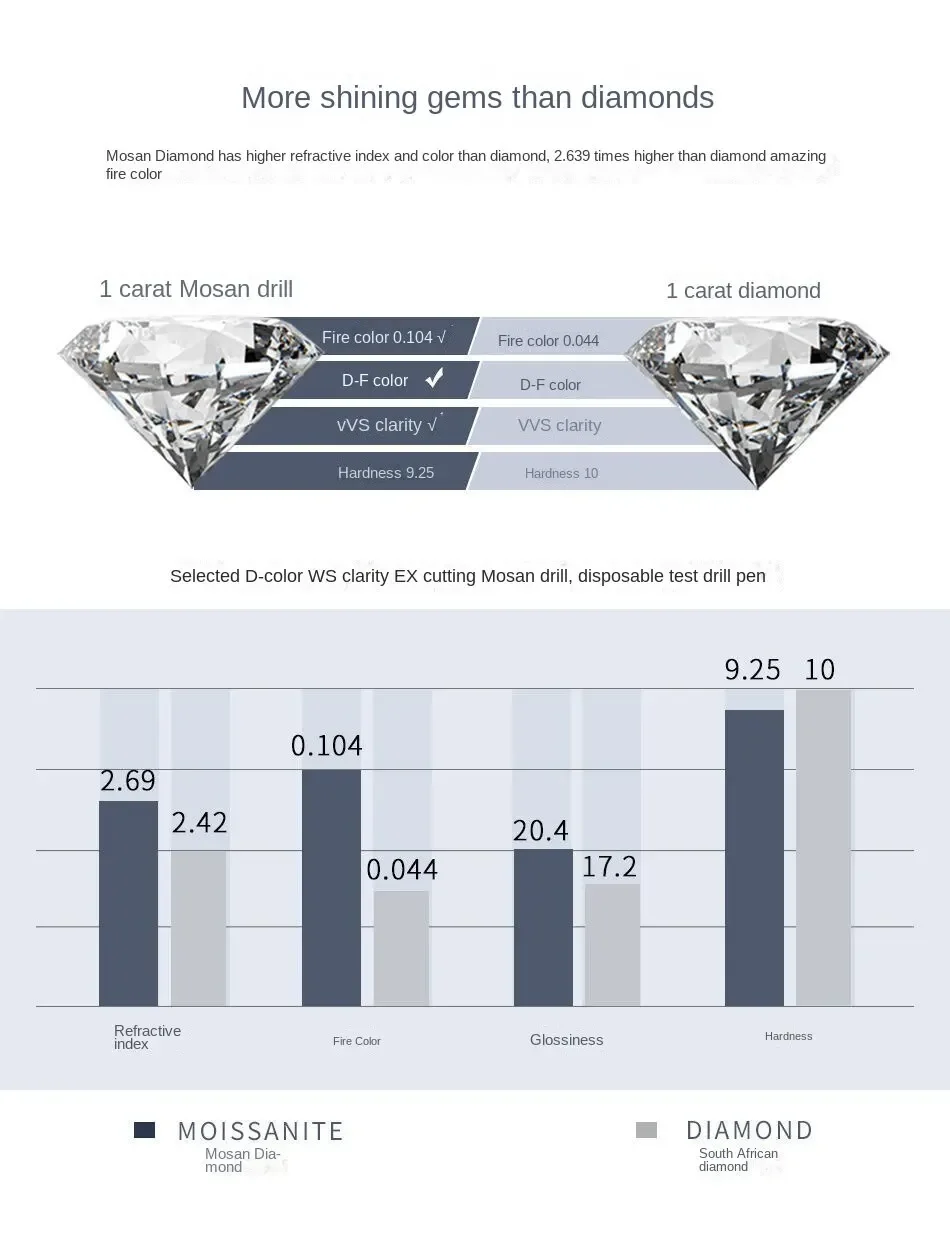 Moissanite Color Grade: D color (Pass Diamond Tester)
