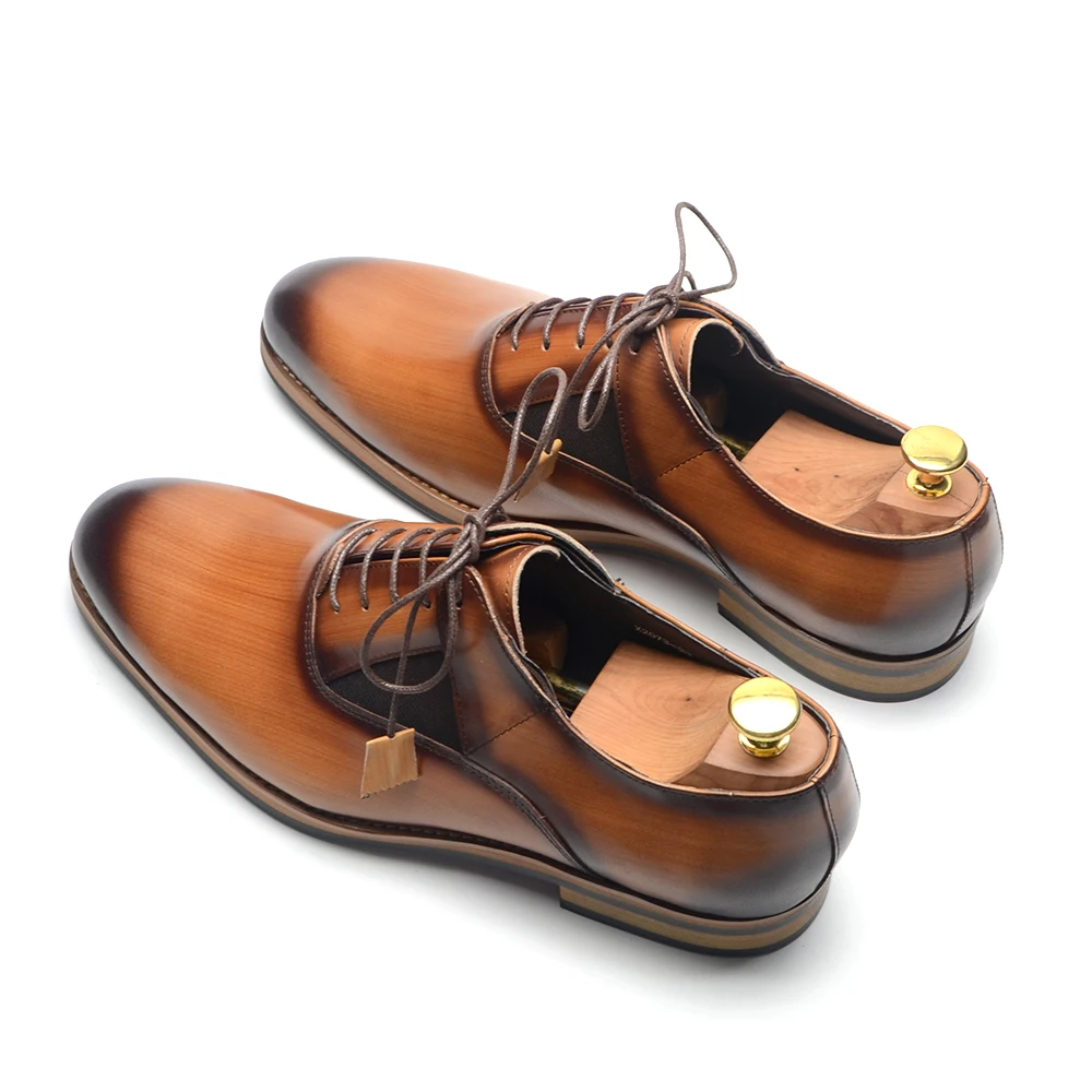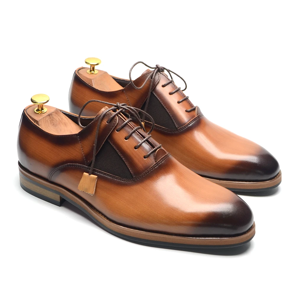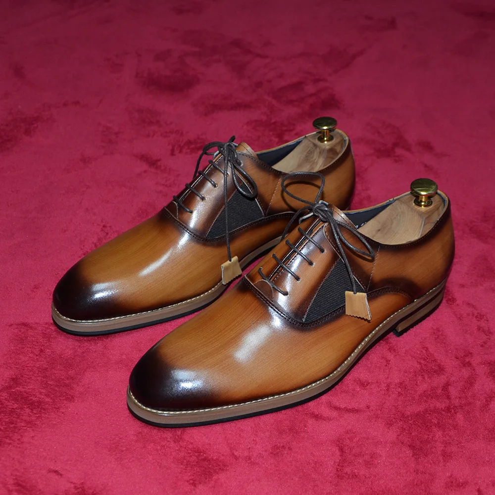 Italian Luxury Brand Original Cowhide Genuine Leather Men’s Oxford Dress Shoes Lace-up Plain Toe Handmade Wedding Business Shoes for Men
