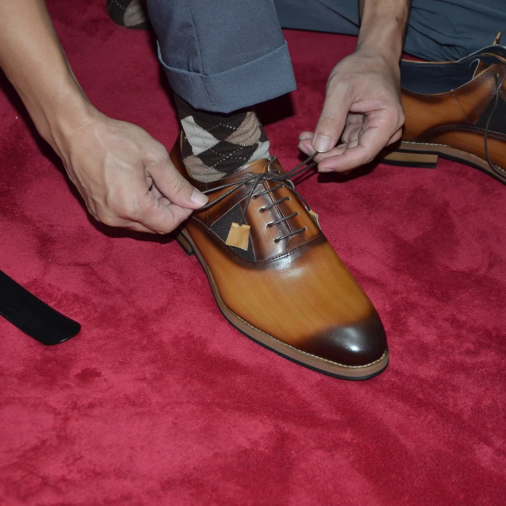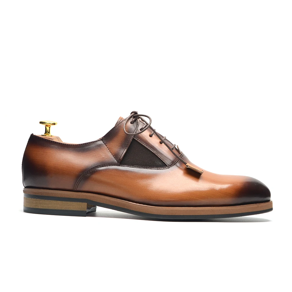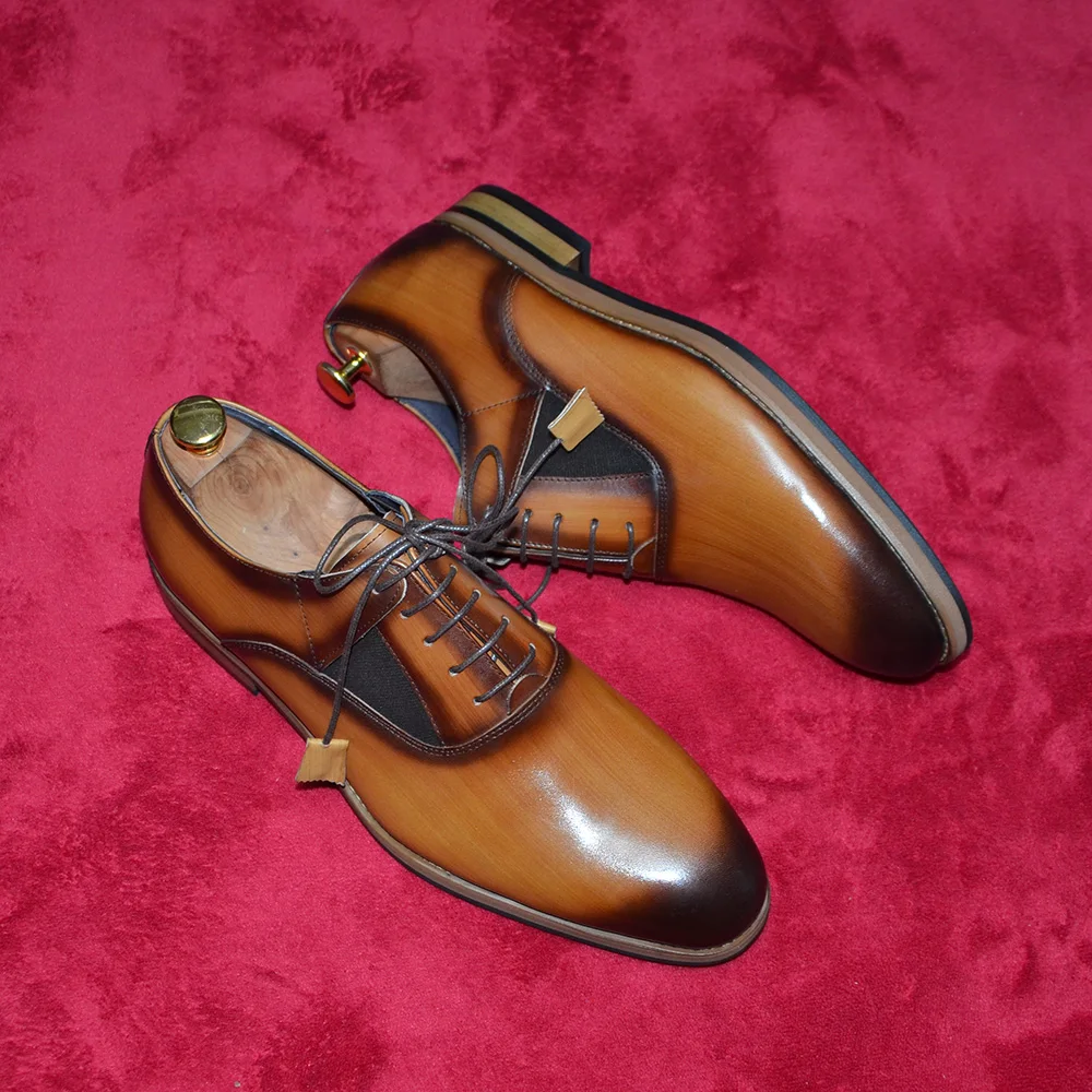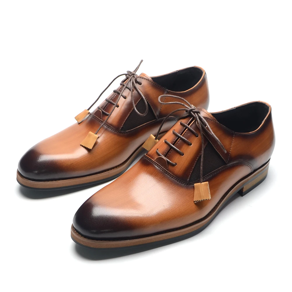 Italian Luxury Brand Original Cowhide Genuine Leather Men’s Oxford Dress Shoes Lace-up Plain Toe Handmade Wedding Business Shoes for Men