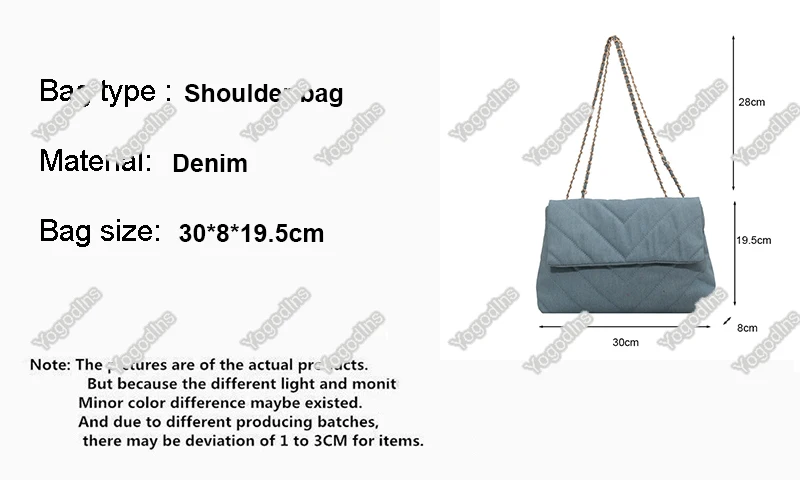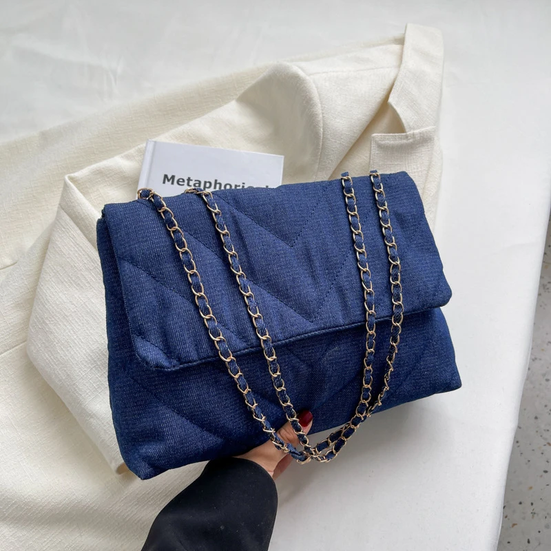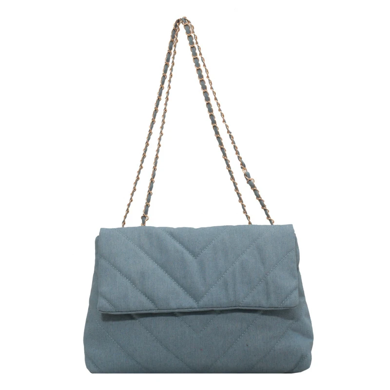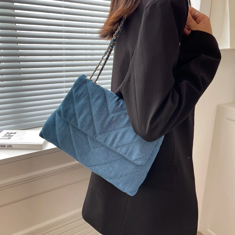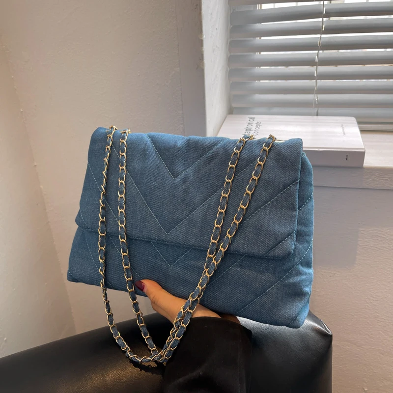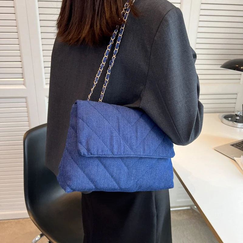 Luxury Designer Quilted Tote Bags,Fashion Solid Color Jeans Denim Bags, Shoulder Crossbody Bag, Girl Chain Handbag